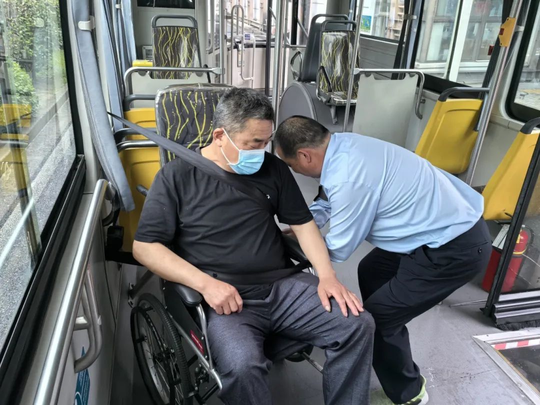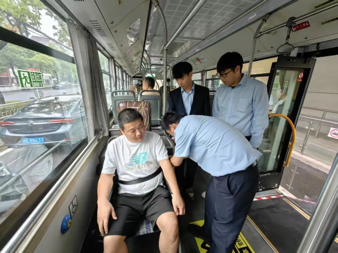 206路所用“白金刚”无障碍公交车型,车厢内设有轮椅停放区域、无障碍轮椅导板等人性化助残设施,驾驶员开启公交车“侧跪”键后,车身右侧会缓缓倾斜一个小角度,车门台阶与地面的距离进一步降低,极大提高了残障乘客上下车的方便性和乘坐的舒适性。 5月17日下午,206路管理人员在临汾路站点组织新驾驶员模拟特需乘客上车情景,向新驾驶员讲解培训了无障碍设施的使用方法,以及在使用过程中的注意事项。之后新驾驶员角色换位,从一名残疾人士的视角出发,切身体会其在日常出行中上下车的诸多不便,设身处地去了解他们在出行中遇到的困难。 除了体验无障碍人士乘车,驾驶员们还开展了盲人乘客的乘车体验。驾驶员唐旭辉用眼罩蒙上了自己的眼睛,拄着导盲杖,由于不知台阶多高,刚迈出步子,就被绊倒在车门处。好不容易进了车厢开始找座位,他只能动作非常缓慢地挪着步子,在没有其他人员帮助的情况下状况百出。当进入“帮扶环节”后,模仿盲人乘客的汤师傅不论是在上车、入座,还是下车,都顺利了起来。他感慨地说:“残疾人乘坐公交车真是太不容易了,当遇到盲人乘客或者行动不便的乘客时,我会拿出更多的耐心,主动停车做到‘车等人’,帮助他们上车、就座,尽最大努力解决他们日常出行的难题。” 862路大康路终点站开展示范宣传,通过设立咨询台、摆放宣传展板等方式帮助周边居民及过往群众了解残疾预防知识和相关的救助政策,引导群众增强健康意识,养成良好生活习惯,定期健康体检,早发现早治疗,引导大家进行正确有效的残疾预防。 116路、51路、宝山1路作为适老化线路,在关爱老年乘客和行动不便乘客方面更是发挥了示范作用。线路全体驾驶员都经过了专门的培训,掌握了帮助特殊乘客的技巧和方法。无论是帮助乘客提拿重物,还是耐心解答乘客的疑问,驾驶员们都始终用温暖的服务传递着关爱。一位经常乘坐116路的老年乘客表示:“我年纪大了,行动不太方便,但每次乘车都特别安心。驾驶员们就像我的家人一样,总是主动帮助我,让我感受到了关爱。”