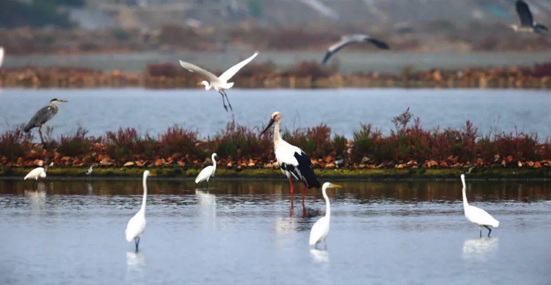 随着南海新区生态修复力度加大,群众的生态保护意识不断提升,这里成为各类鸟儿理想的觅食场与繁殖地。如今,有300余种鸟类来到这里栖息、繁衍,包括东方白鹳、中华秋沙鸭等国家一级、二级保护动物和濒危、近危鸟类,成为名副其实的鸟类天堂。