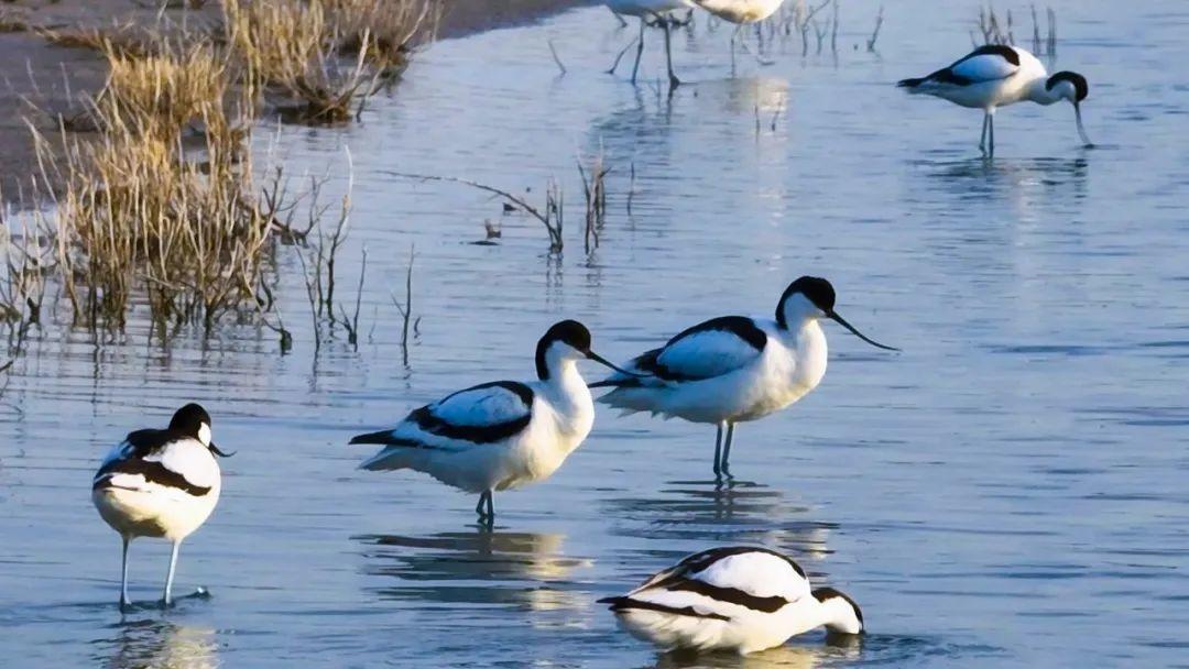 反嘴鹬就是典故“鹬蚌相争,渔翁得利”里的“鹬鸟”,它两翼黑色、体羽雪白,喙细长而尖翘,被称为湿地精灵,是“生态环境的监测员”,对栖息地的水质、食物资源、生态安全等条件要求极为苛刻。这些湿地精灵用悠然自得的姿态,印证着南海新区良好的生态环境。