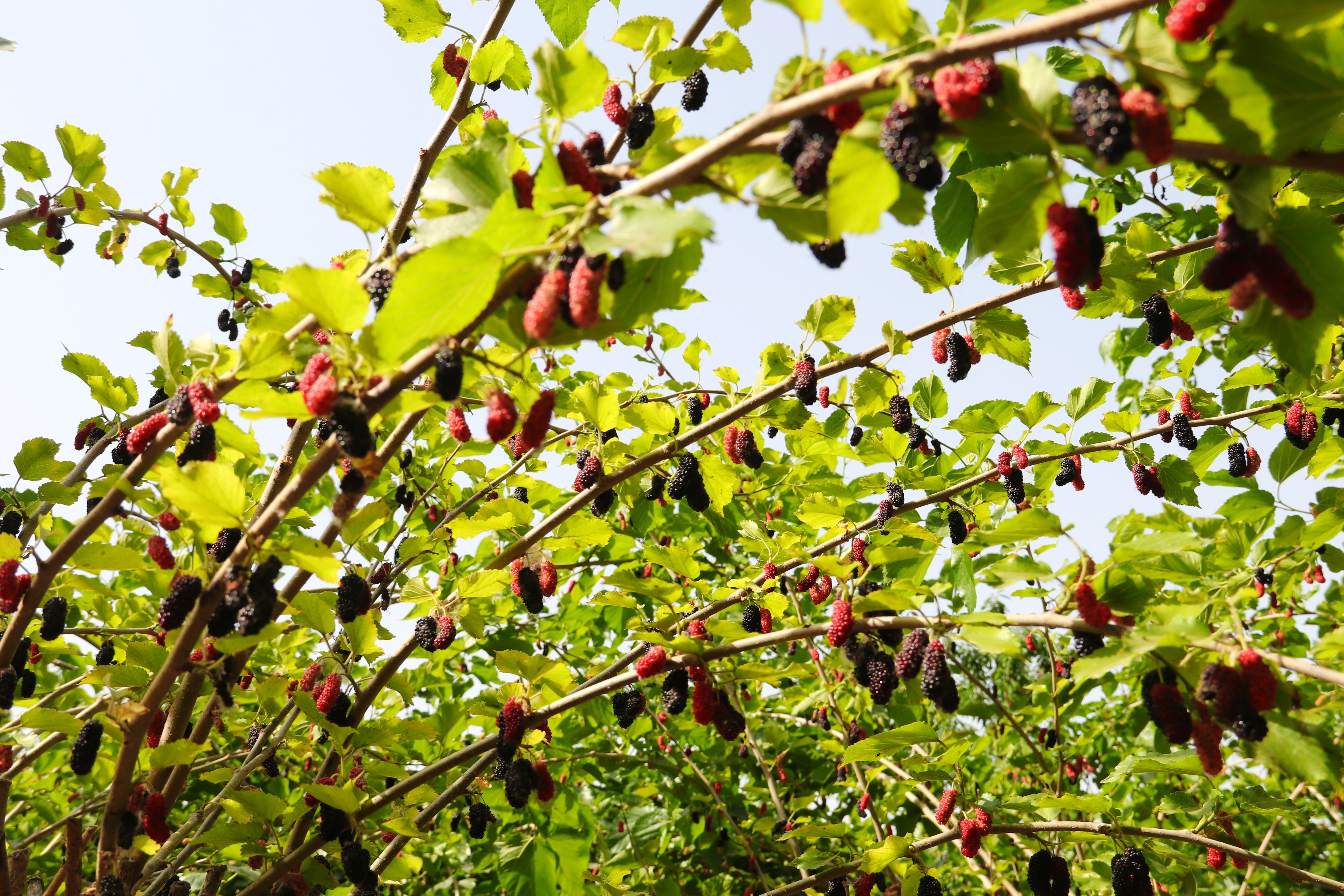 五月,菏泽鲁西新区陈集镇的桑葚熟了,或紫得发亮,或红若晚霞,亦或有青果点缀其间,颗颗桑葚缀满枝干,成为动人的风景。