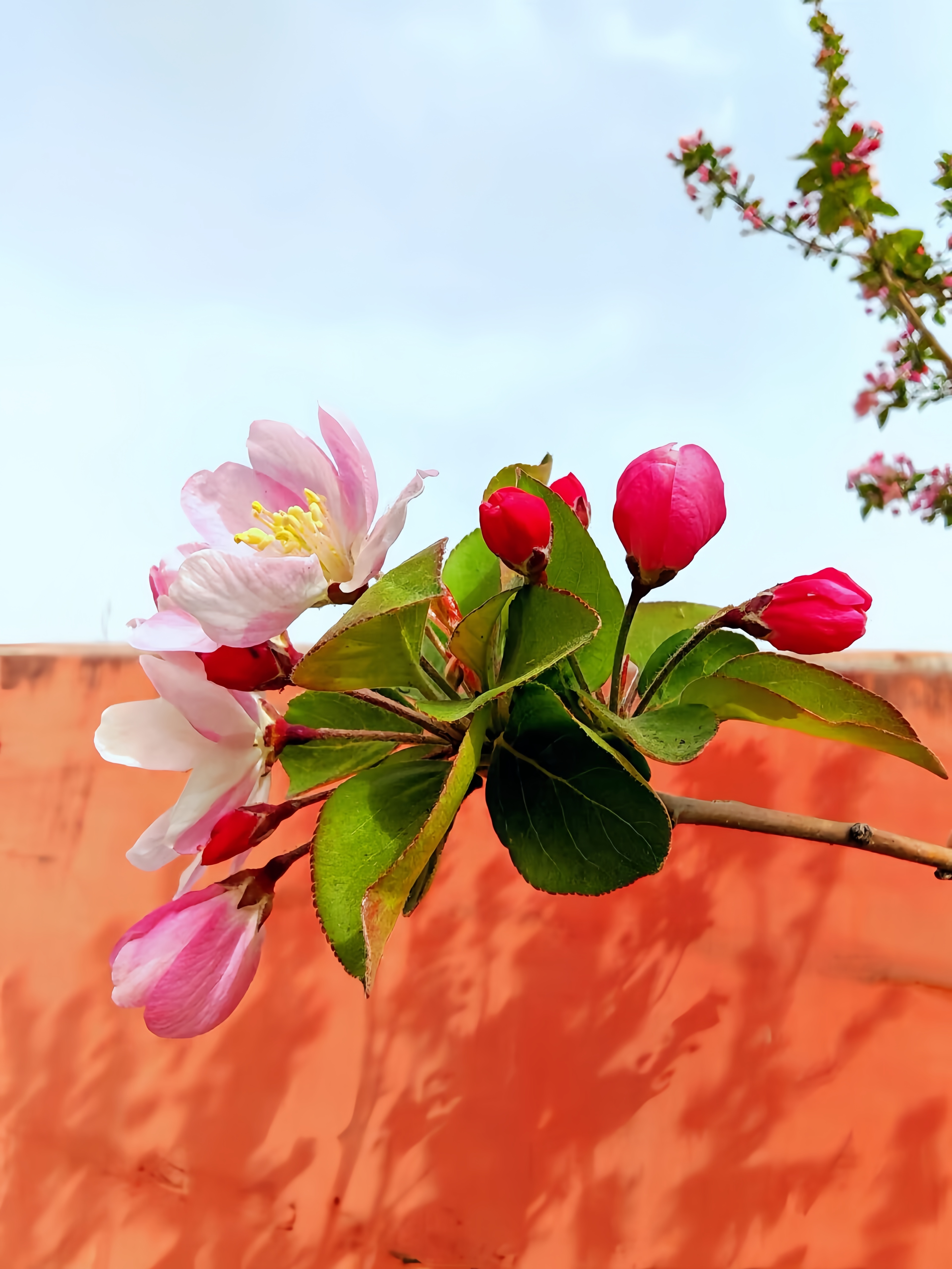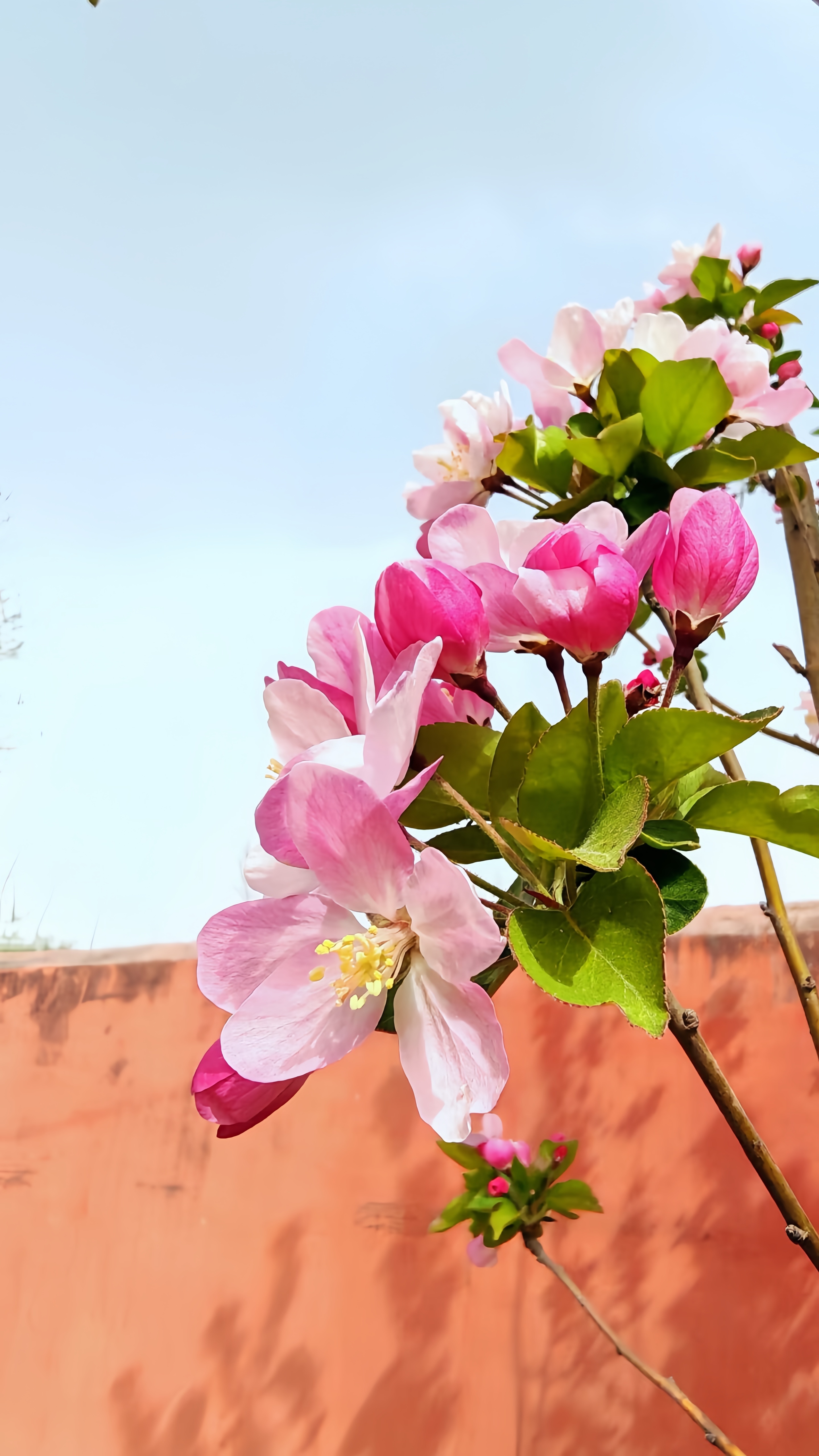 春天是万物复苏、繁花争艳的季节 ,郓城县张鲁集镇王进士小学校园外的海棠花在此时展露笑颜。粉嫩的花瓣与嫩黄的花蕊,搭配着翠绿的叶片,展现出春天的勃勃生机。暖橙色的墙体与蓝天,烘托出春日的明媚与温暖,传递出春天独有的活力与美好。