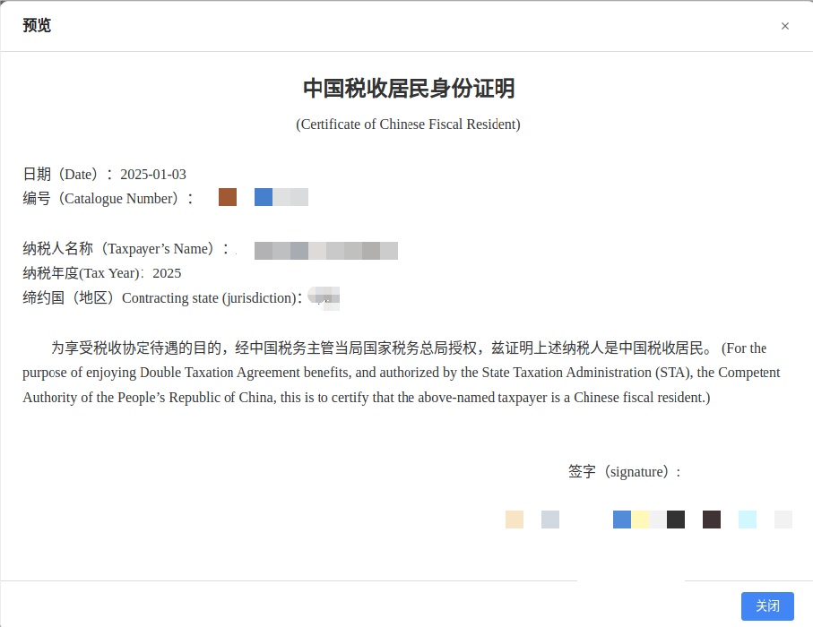 根据《国家税务总局关于<中国税收居民身份证明>有关事项的公告》(国家税务总局公告2025年第4号),《中国税收居民身份证明》现已更新样式,终审日期在4月1日之后(包括当天)的文书使用新的文书式样,见下图: