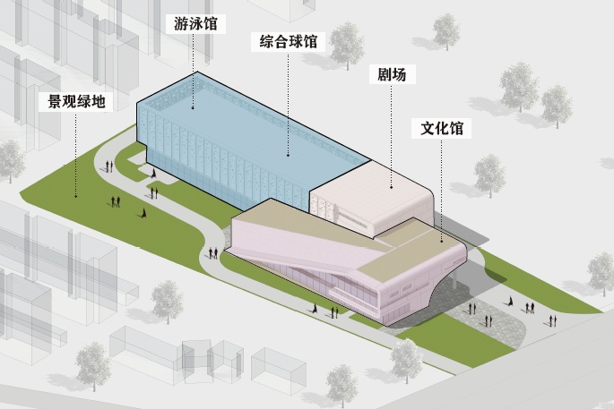 规划建设综合球馆、健身中心、游泳馆等体育设施及剧场、舞蹈室、阅览室等文化活动空间。该项目建成后将成为大居内地标性文体活动场馆,有效弥补区域文体设施短板,助力打造“15分钟社区生活圈”,推动公共服务均等化发展。