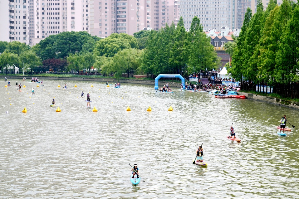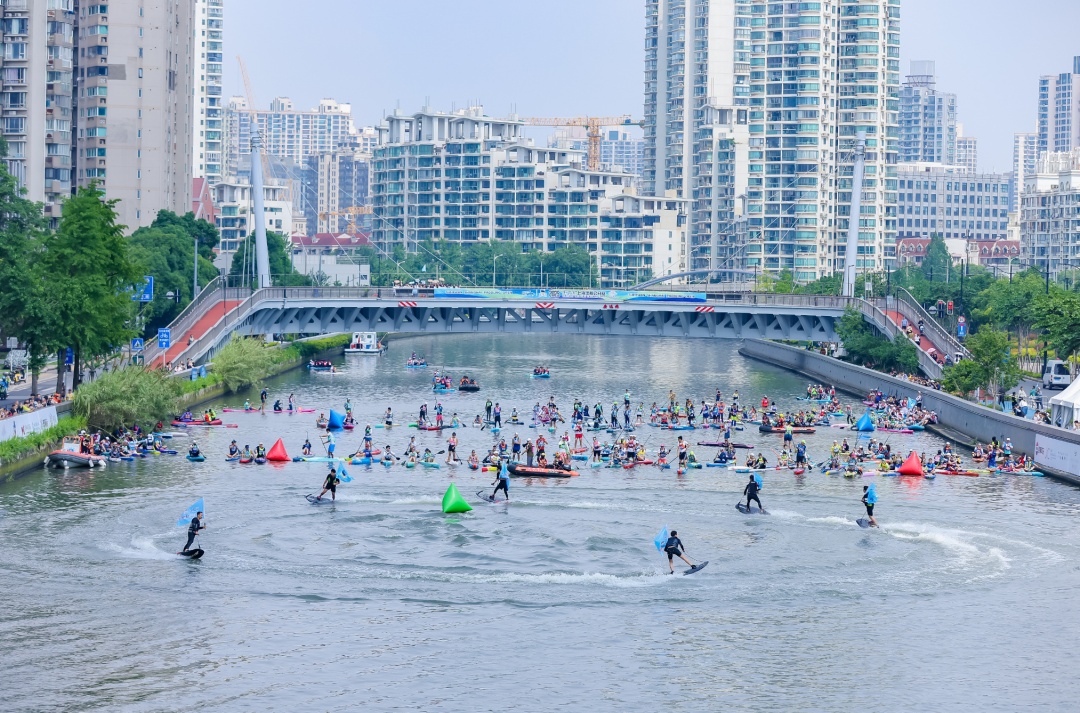 脚踩长板,手执划桨,这个周末的苏州河,运动活力与都市魅力再次交汇碰撞于此。