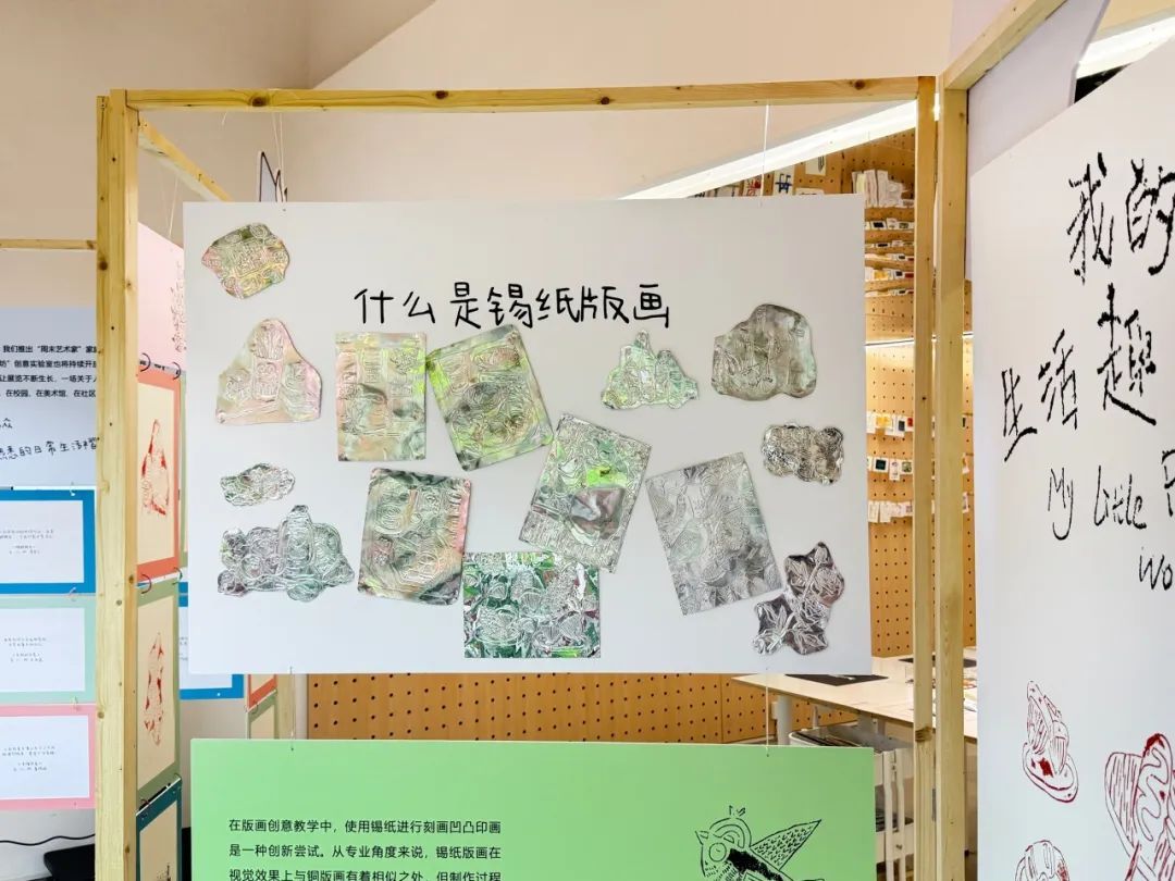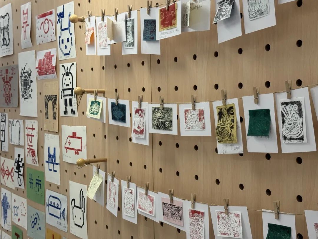 这场以日常生活为灵感源泉的创作展,以“记忆采集站”与“积木拓印工坊”两大创意实验室为核心。同学们观察收集日常家庭生活、校园记忆的符号,创作成版画作品,构成“记忆采集站”。
