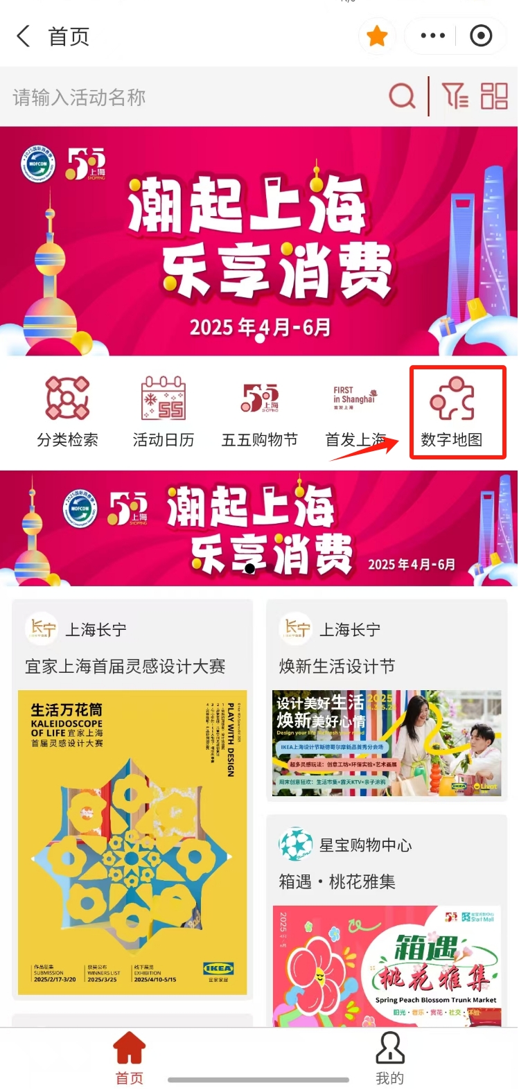 打开“五五购物节”活动排片表中的“数字地图”,还能通过地图展示的方式,更加直观地了解附近的活动信息,快速打卡。
