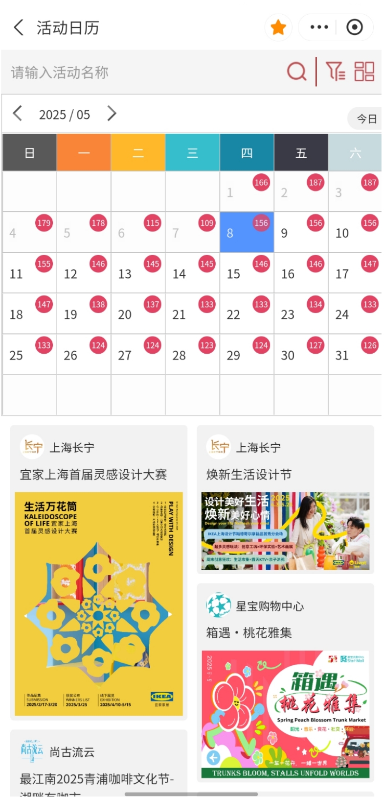 打开“活动日历”,就能一目了然地掌握每天的活动数量,大家可以根据各自的行程安排,选择对应日期,查看活动主题、地点、内容、起止时间及主办单位等活动详情,赶快看看有什么感兴趣的活动吧~