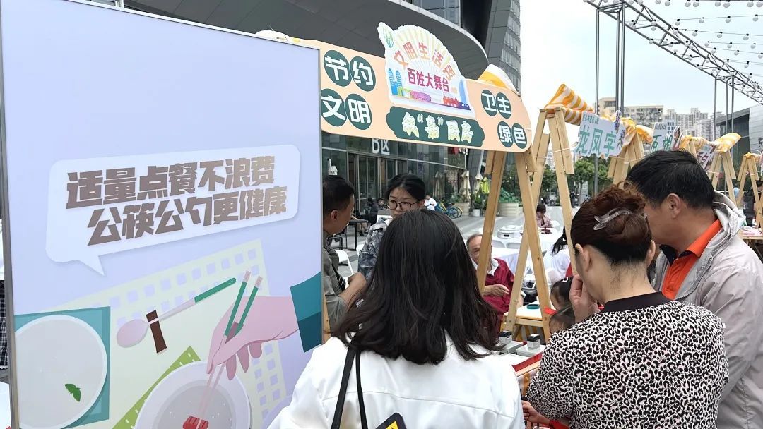 “文明用餐”体验区则通过“光盘行动”游戏,倡导节约粮食理念,号召大家珍惜粮食、避免浪费,养成文明用餐的好习惯。“这次还学到了一点按需备餐的小技巧,就是每一样菜都少弄一点,宁愿吃个八分饱,也不要浪费吃剩菜。”社区居民王阿姨说道。
