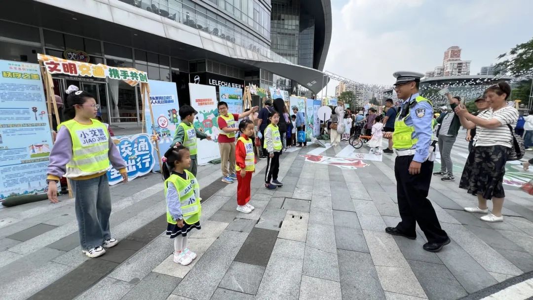 嘉年华现场设置了文明出行、文明养宠、文明用餐等多个主题体验区。在“文明出行”体验区,小朋友们在交警的指导下体验了“小小交警”的工作,劝导车辆遵守交通法规、行人不乱穿马路、非机动车骑行要佩戴安全头盔......大家学得有模有样。与此同时,现场观摩的家长也潜移默化地熟悉了一遍安全出行规则。