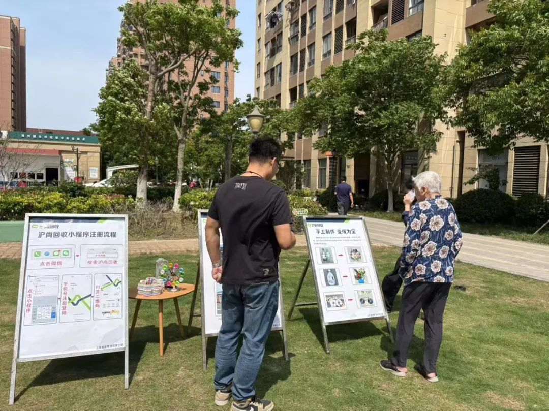 沪尚回收旨在通过“便民化、标准化、智能化”的回收服务,解决传统废品回收“脏乱差”、居民参与度低等问题,实现资源循环利用与社区环境改善的双重目标。活动现场沪尚回收工作人员提供上门回收服务,设置宣传海报,指导居民使用“沪尚回收”小程序,展示变废为宝的手工作品等。