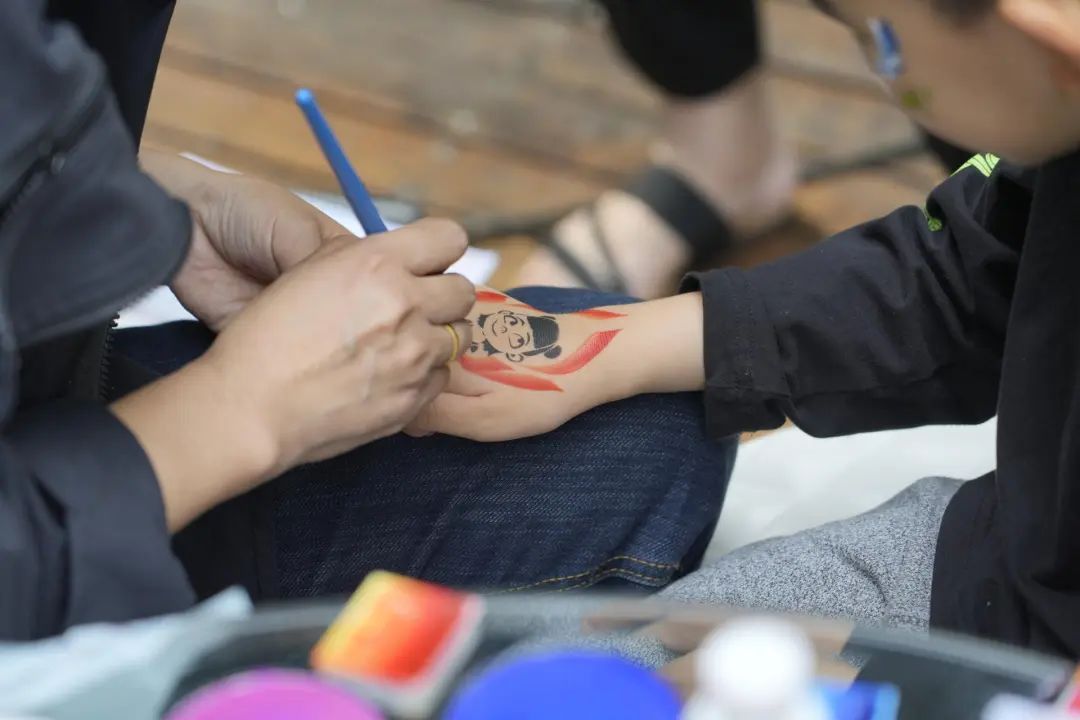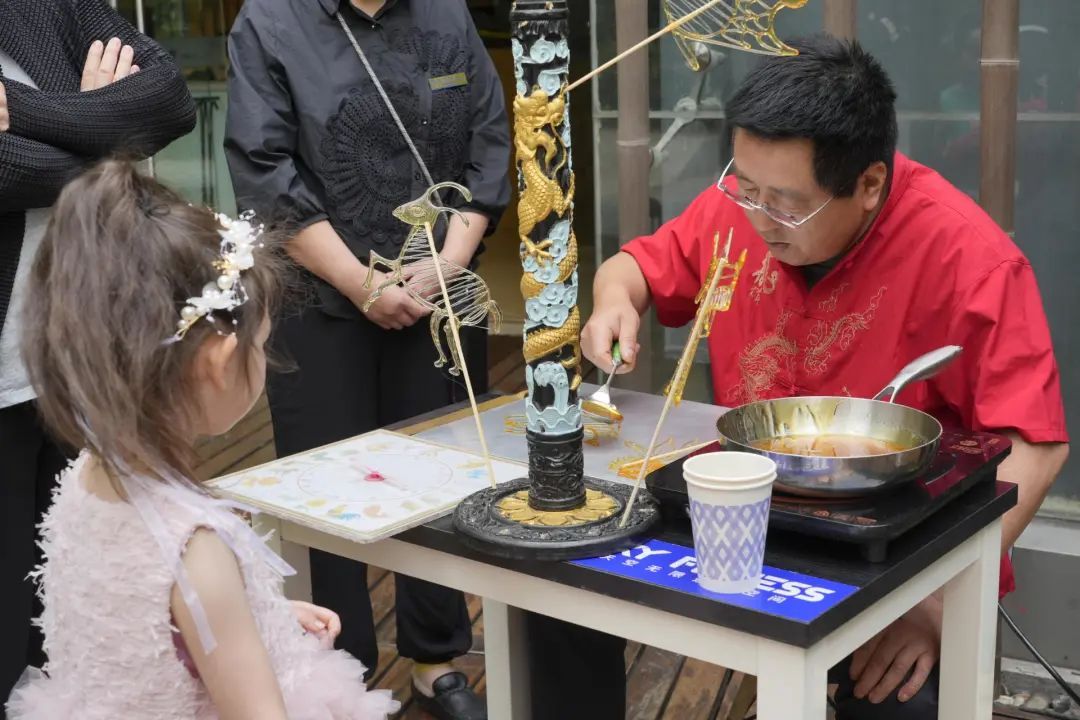 传统文化体验,甜蜜与艺术并存。传统画糖人摊位前,师傅用一勺一铲勾勒出晶莹的糖画;面部彩绘区,孩子们化身“小哪吒”“小艾莎”,创意无限;扎艺术气球更是人气爆棚,萌趣造型让大人小孩爱不释手!
