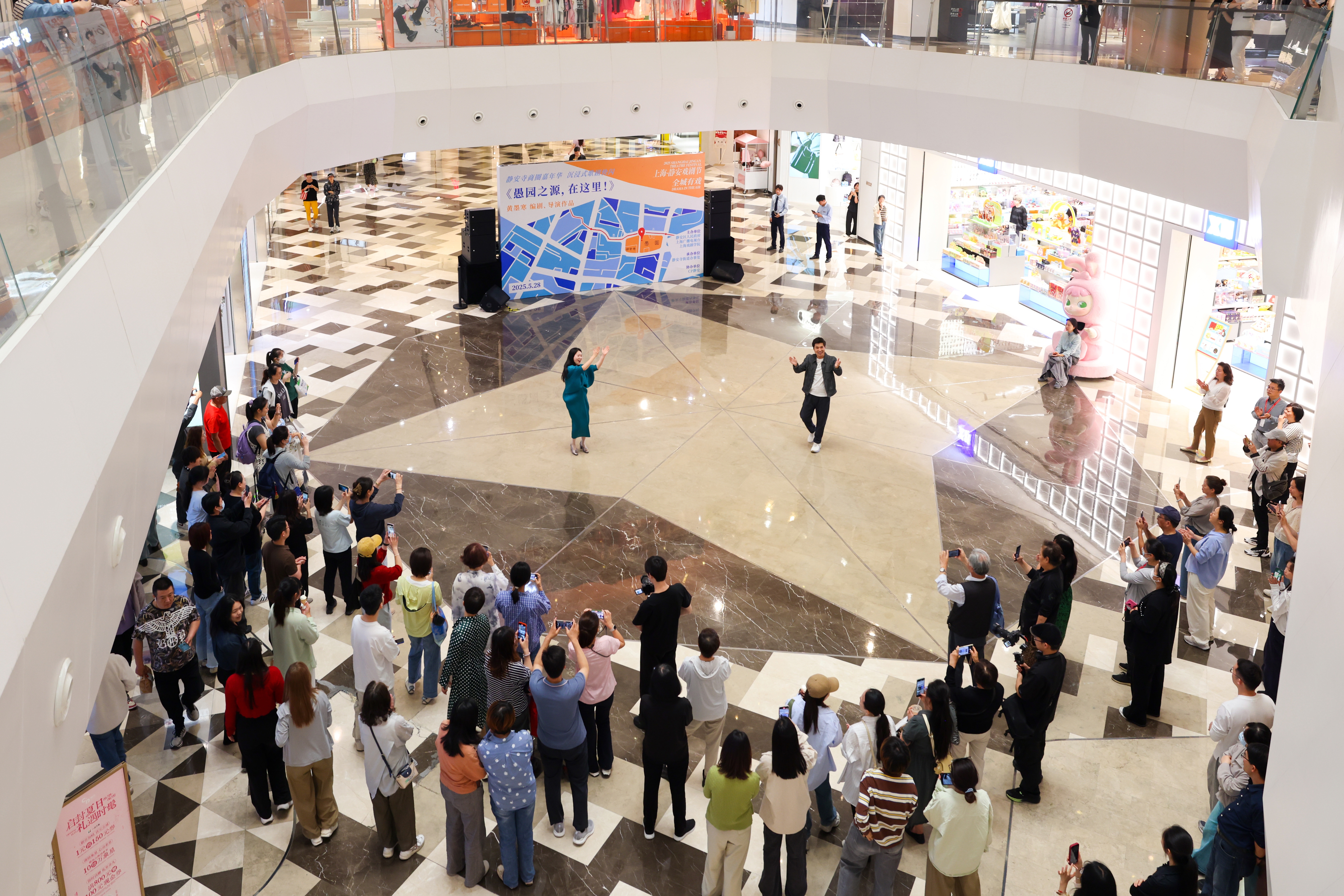 随着音乐旋律响起,CP静安中庭瞬间变成移动艺术空间,上海歌剧院男高音歌唱家李新宇和上海师范大学音乐学院教师牛启梦从人群中款步走来,携手演唱了《我的太阳》《谢谢朋友们》等多部经典歌剧的唱段,用音乐将愚园路从军路到租界市政道路,再到艺术街区的百年嬗变娓娓道来。