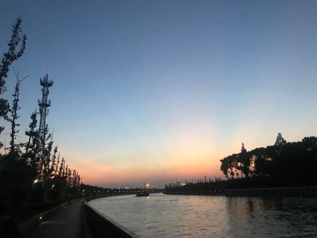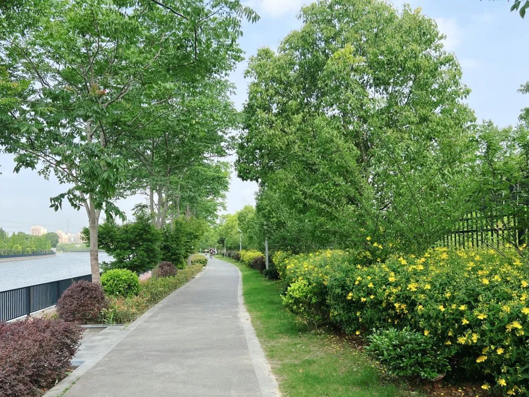 随着雨水增多,淀浦河水面波光粼粼,周边景色正从春日的繁花似锦向初夏的绿意葱茏转变。