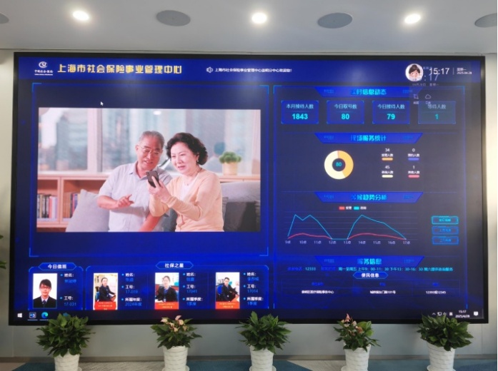 数字赋能,提升服务加速度。本次升级改造坚持以人民为中心思想,显著提升了智能化水平,使社保服务可观可感。大厅内数字智慧大屏通过数据分析和动态监测,便于实现人流提前预判,科学配置资源。屏幕上交互展示现场服务统计、等候趋势分析、值班服务信息、社保之星风采等,让“数字社保”科技感“拉满”。同时,经办大厅升级自助服务区,优化配备网上办事电脑、智慧柜员机,立式触摸宣传屏,实时滚动播放办事告知、操作指南、便民服务信息等实用资讯,方便办事群众更精准获取相关信息。
