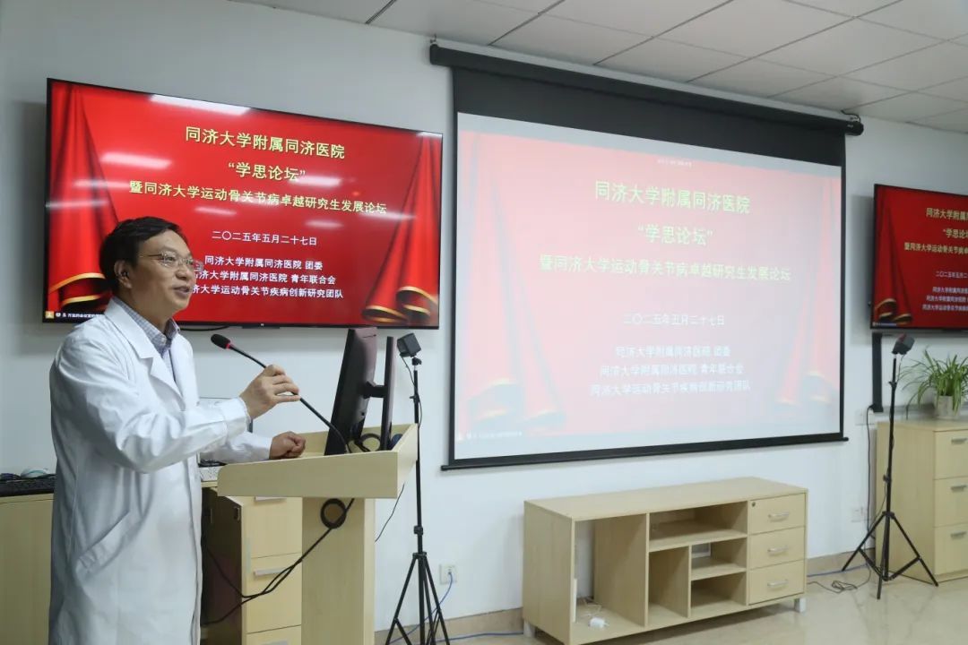 5月27日,同济医院2025年“聚焦科研赋能 共赴学术之约”学思论坛在同康楼13楼西示教室举办。本年度学思论坛特邀中南大学湘雅医院内分泌科罗湘杭教授、同济大学脊柱脊髓损伤再生修复教育部重点实验室朱融融教授、同济大学附属东方医院(南院)脊柱外科王善金教授、同济大学电子与信息工程学院齐鹏教授、中国科学院分子细胞科学卓越创新中心王多教授,聚焦科研热点与临床转化,带来兼具理论深度与实践价值的学术分享。党委副书记吴登龙出席并致辞,科研处副处长(主持工作)张箴波及来自院团委、青年联合会40余位青年骨干参会,会议由青年联合会会长宋利格主持。
