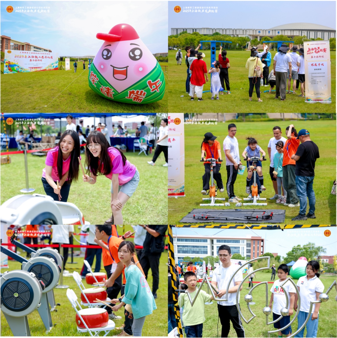 与会嘉宾共同为龙舟“点睛”,2025年上海教工龙舟赛正式开赛。比赛采用计时赛方式进行,随着号令响起,各支龙舟如离弦之箭破浪前行,选手们精神饱满、动作整齐,奋力挥桨,现场助威声、鼓点声、喝彩声此起彼伏,岸边旌旗飞舞,热烈氛围达到高潮。为丰富活动内涵,赛事当天还举办了亲子乐游园活动,让广大教职工在运动与文化的融合中共度佳节。