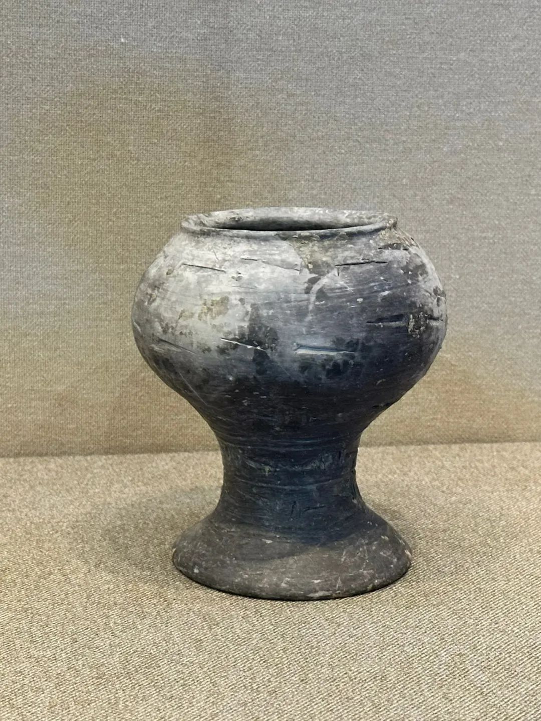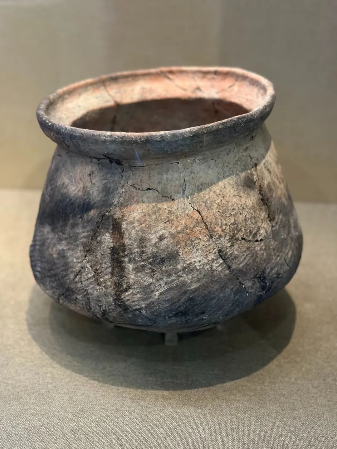腹径达24厘米的“陶釜”堪称“炊具之王”,圜底清晰可见的烟炱痕迹,是它曾于远古灶台上沸腾羹汤的明证,这件器物正悄然揭开上海最早“厨房”的神秘面纱。