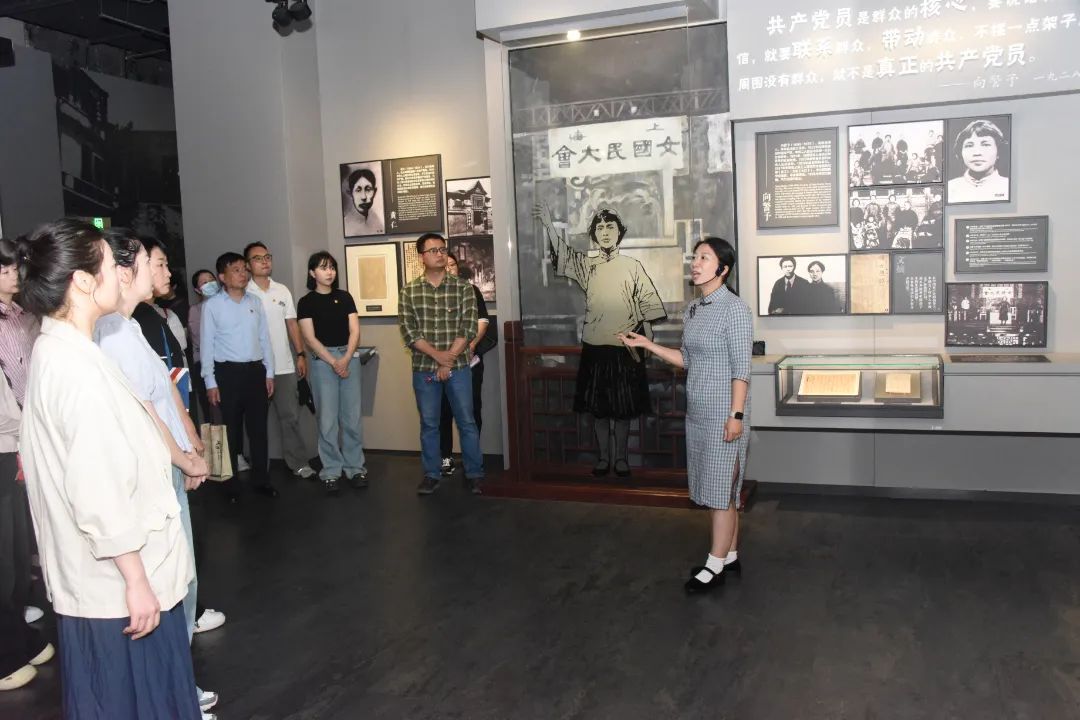 全国劳模王承、苏嵘,市劳模尚艳华、余美香、冯知洋、周晴、李雷惊、符欣怡,市五一奖章获得者万莉娜、兰凡,区劳模陈俊峭、董梁和工会、学生志愿者们,为前来参观的市民带来深入的讲解。这个特殊的日子里,已经70岁的市劳模尚艳华在她所讲解的展厅,以更加饱满的情绪讲述着顾正红、瞿秋白、刘华等工运先烈的事迹,为观众呈现了五卅运动的诸多历史细节;00后的“新科”市劳模符欣怡通过反复研读历史材料等,深情地讲述着百年前那些同龄人可歌可泣的故事……