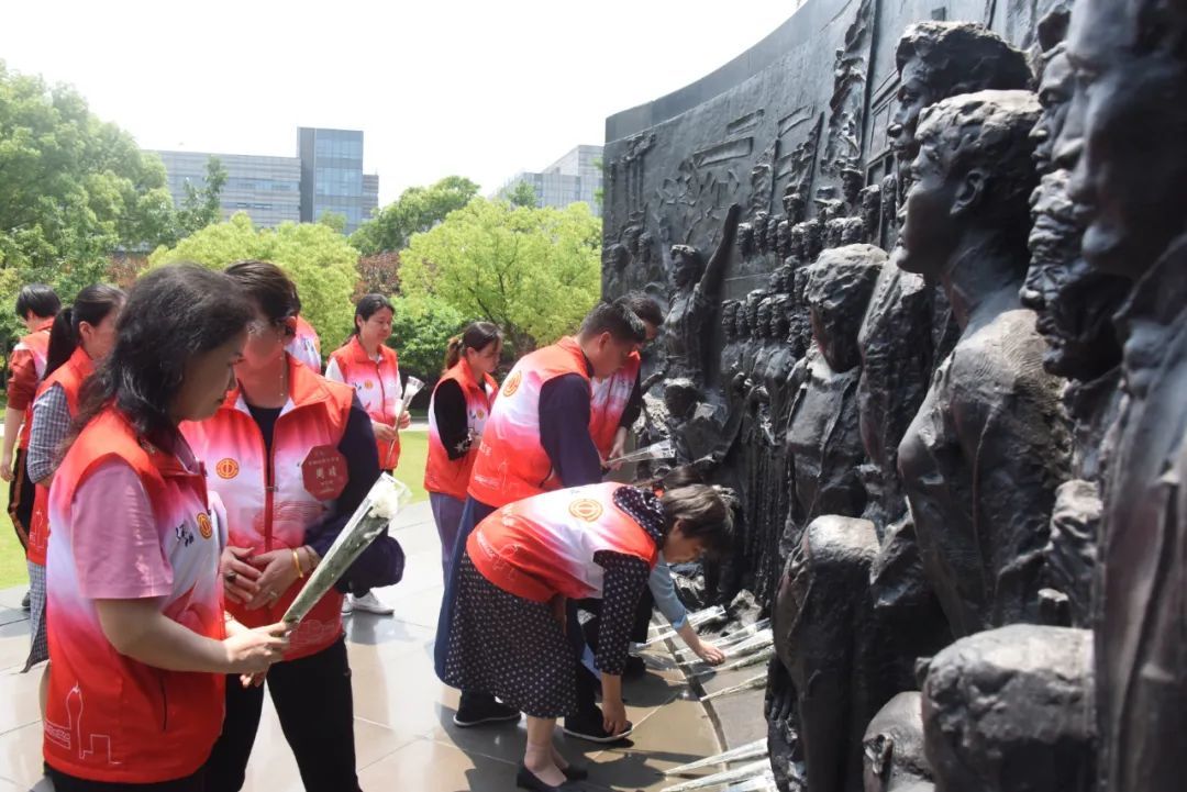 徐汇劳模志愿讲解团的志愿者们来到五卅惨案纪念碑前,共同向先烈们敬献鲜花,表达对五卅及各工人运动中英烈的深切缅怀,也是对中国百年工人运动的崇高敬意。