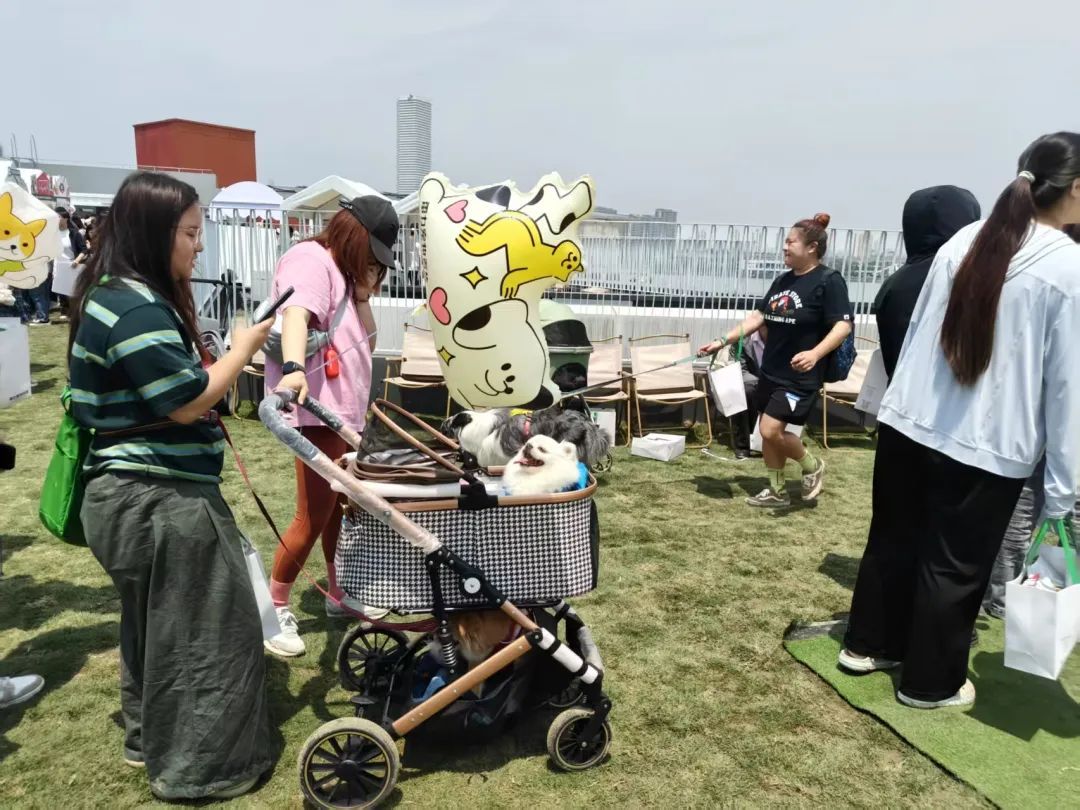 开业首日,電力宠物公园举办的萌宠市集吸引上百组家庭携宠物到场。步入园区,开阔的草坪上,金毛、泰迪等宠物自由奔跑嬉戏;一旁的遮阳休憩区,主人们在享受江景的同时交流养宠经验,现场氛围温馨热烈。