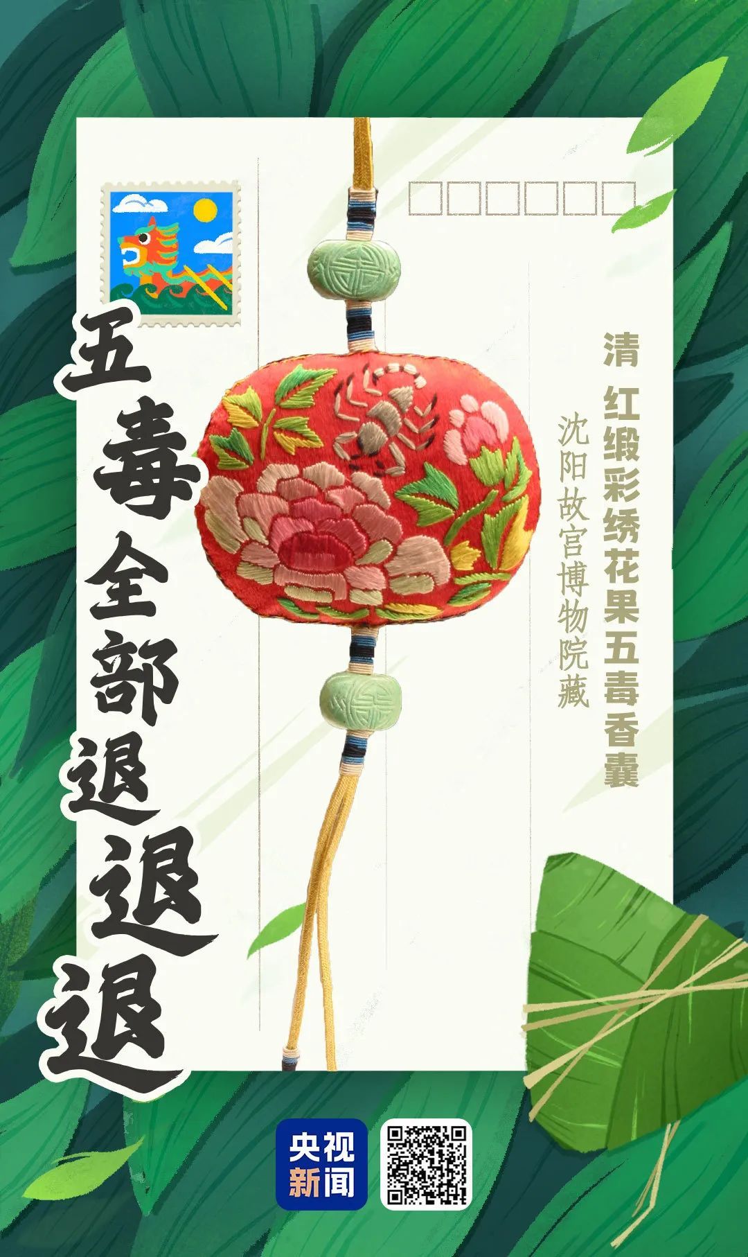 △清 红缎彩绣花果五毒香囊 沈阳故宫博物院藏