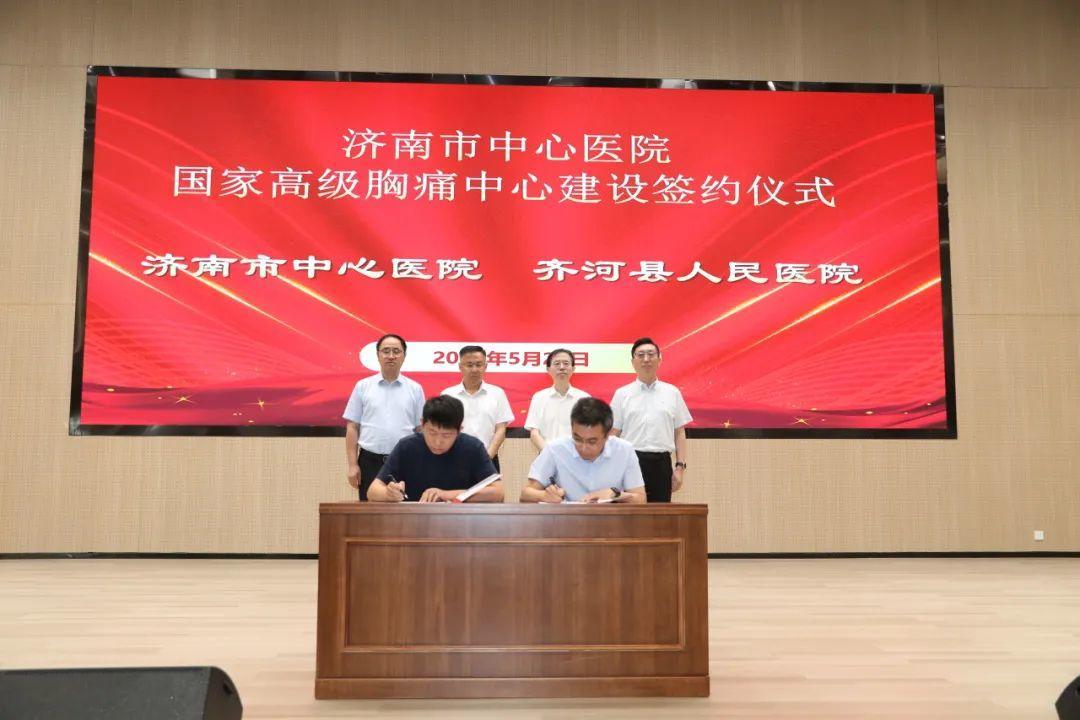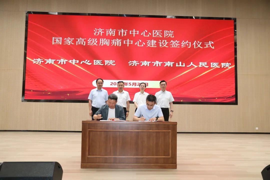 宁斌代表高级胸痛中心与合作单位——济南市急救中心、南山区人民医院、齐河县人民医院代表签约,这标志着区域胸痛救治协作网络的进一步强化,推动胸痛中心标准化流程向合作医院延伸、强化“基层首诊-双向转诊”模式,优化急危重症患者转运机制。