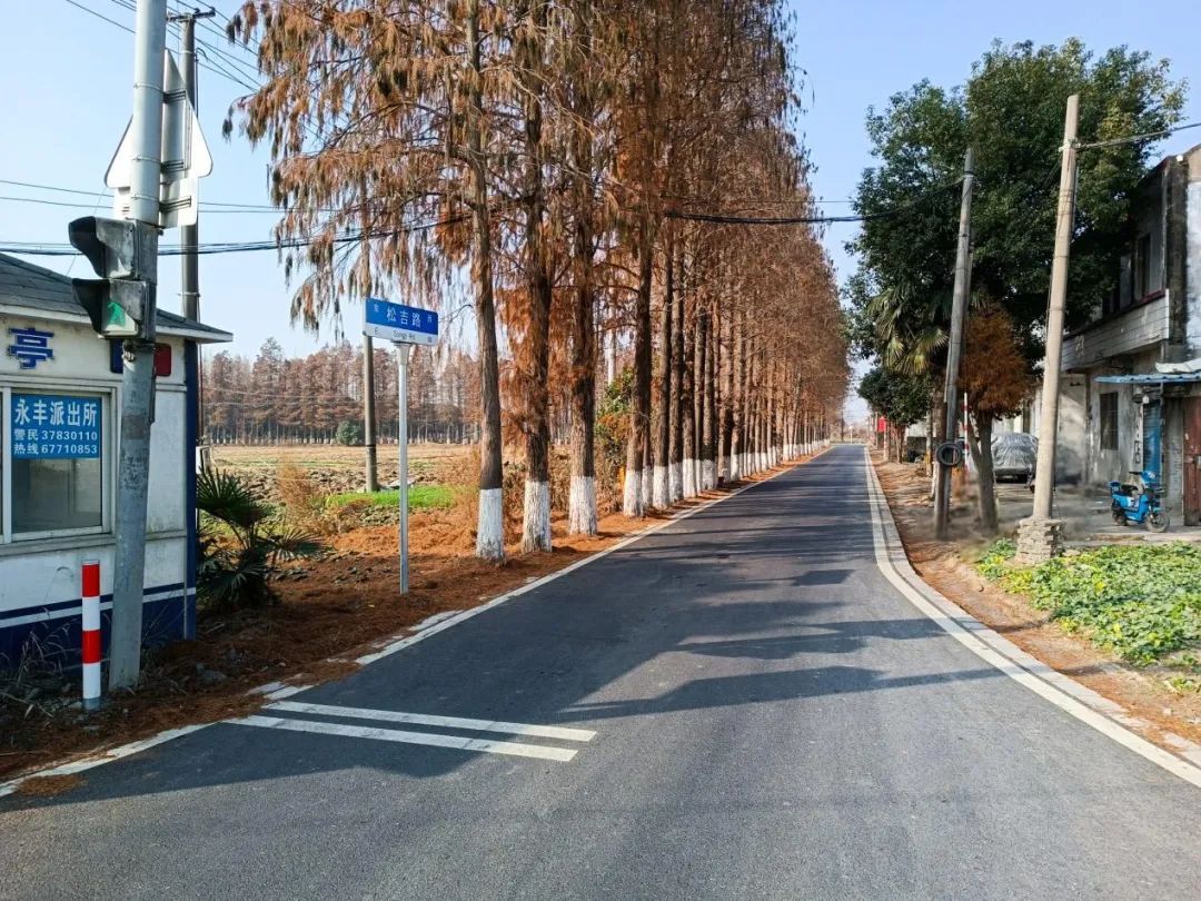 永丰街道松吉路(松汇西路-- 秀春塘)全长2.9km,是吉祥村的主要出行道路。该道路提档升级前路面破损较严重,路面狭窄,导致道路通行效率低。提档升级后,路面修复平整后加罩沥青,增加路缘石,并在道路弯道处加宽路面,方便车辆会车,提升道路通行效率,成为连接辰塔路和松汇西路两条主干道的重要通道,方便居民出行。