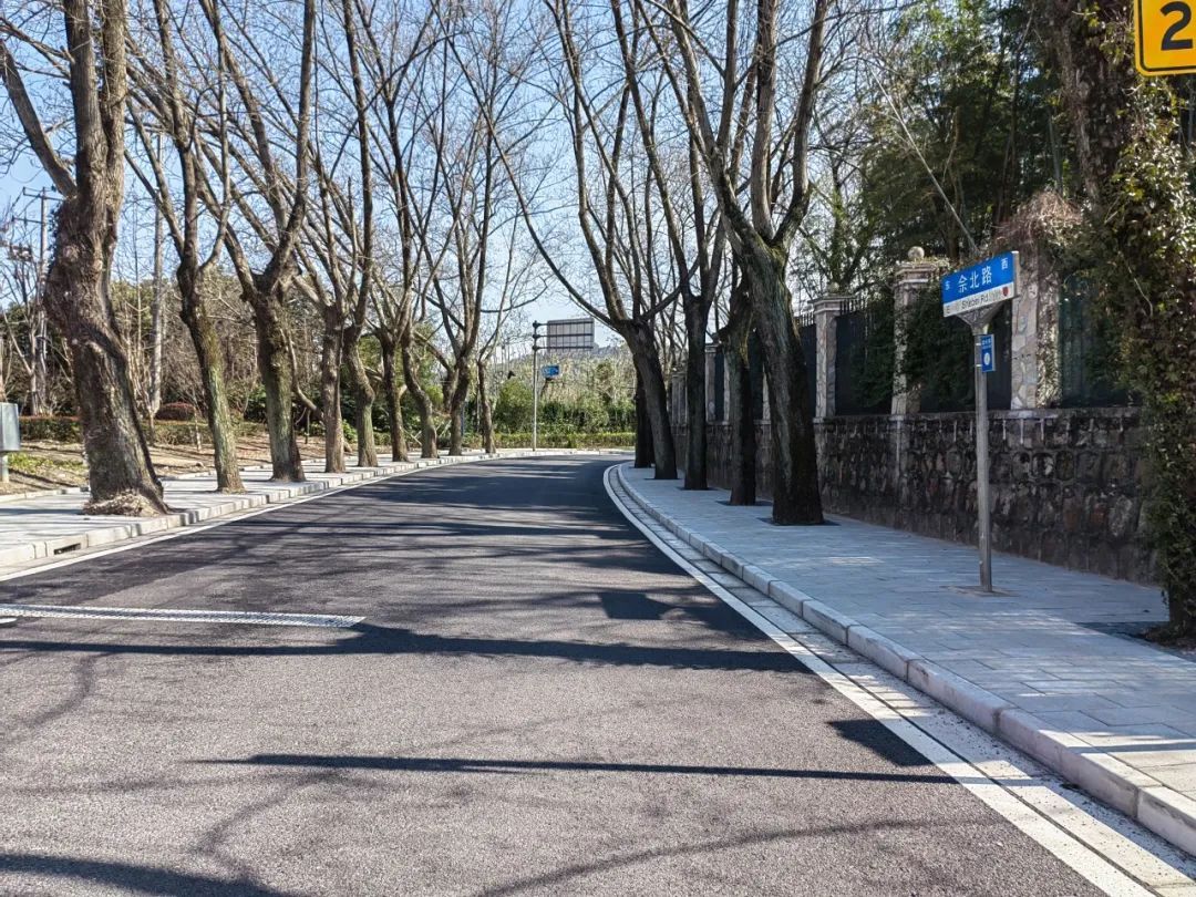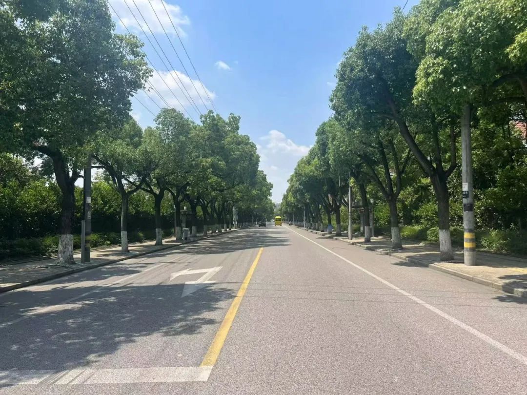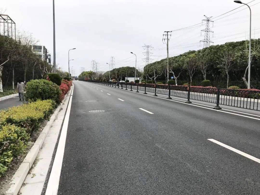 赵非公路(九干路-泗陈公路)是泗泾镇一条南北走向的重要道路,该路段全长1.38km,于2023年、2024年完成换新沥青路面,重新铺设人行道,桥梁栏杆刷新、安全防护设施等附属工程建设。沿路两侧种植有香樟树,它们高大挺拔,枝繁叶茂,如同绿色的巨伞为城市带来清凉。赵非公路中修便利了周边企业、小区居民的通勤条件,保障了车辆的通行安全,改善了周边区域环境,使得道路整体景观更加美观。