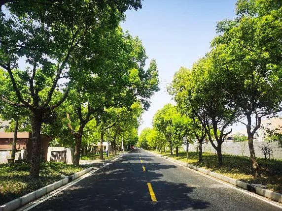 淀浦河路是九亭镇区内居民出行的主要道路,小涞港~花园路,全长1.864公里,沿路两侧种植有香樟树,繁茂的枝干向路中央伸展,形成浓密的树荫,影影绰绰,让人感到十分惬意。