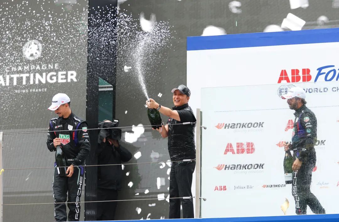 即使受到雨水干扰,全程比赛依然上演了速度与激情,车手们巧妙利用战斗模式,在你追我赶间实现超车,让比赛看点不断。最终,捷豹TCS车队车手卡西迪完成PTW(杆位起步拿到冠军),喷起胜利的香槟。保时捷车队车手维尔莱茵和达斯科塔双双登上领奖台。