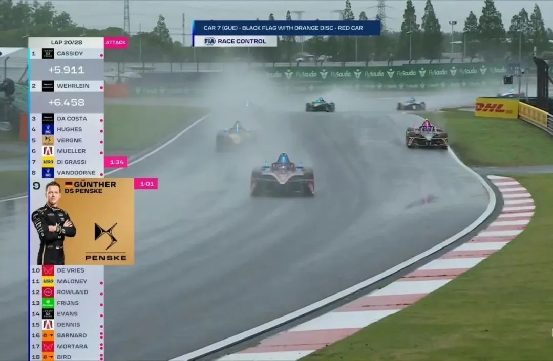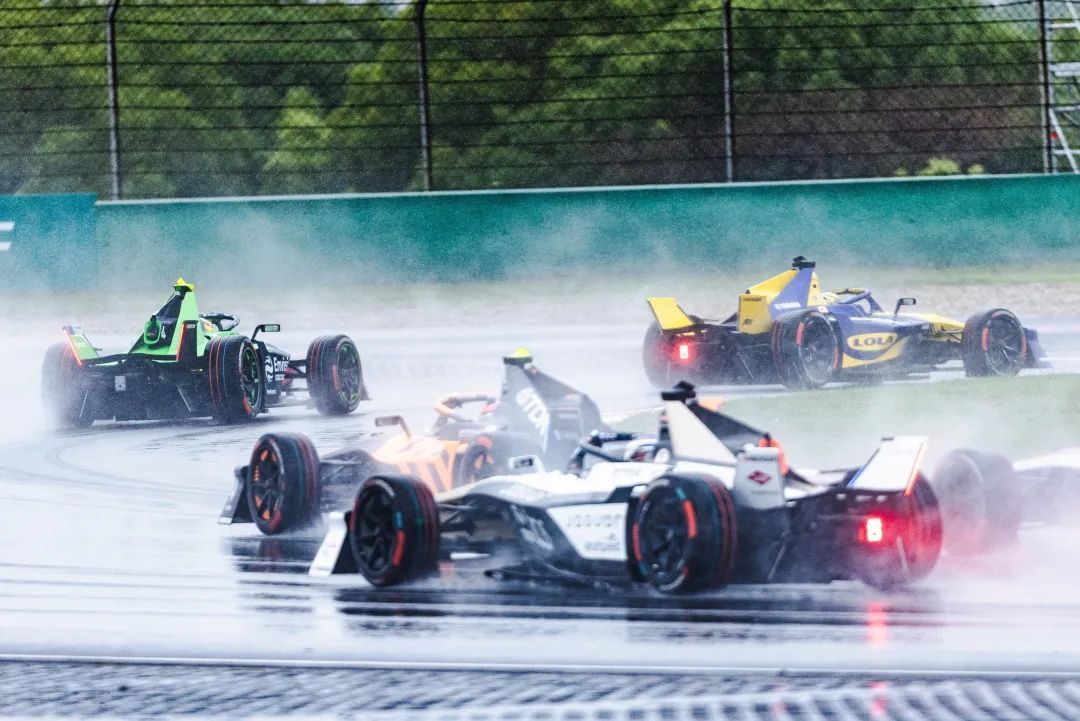 赛道湿滑,对赛车较量无疑是一个巨大的挑战,不仅增加了打滑风险,高速运转的车轮激起的细密水浪,对车手的视野也造成了巨大的影响。比赛过程中,多位车手出现了车轮打滑的情况,昨天拿到冠军的冈特尔因为红车故障遗憾退赛。
