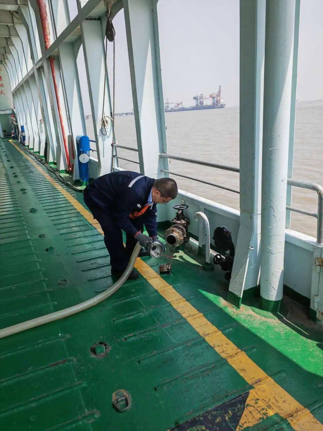 宝山海事局综合业务处相关负责人说:“海事部门也为航运公司提供了一个快速报告的平台,便于航运公司在处置污染物的时候能快速报告,我们快速处理,他们快速处置污水,形成快速便捷的流程。”