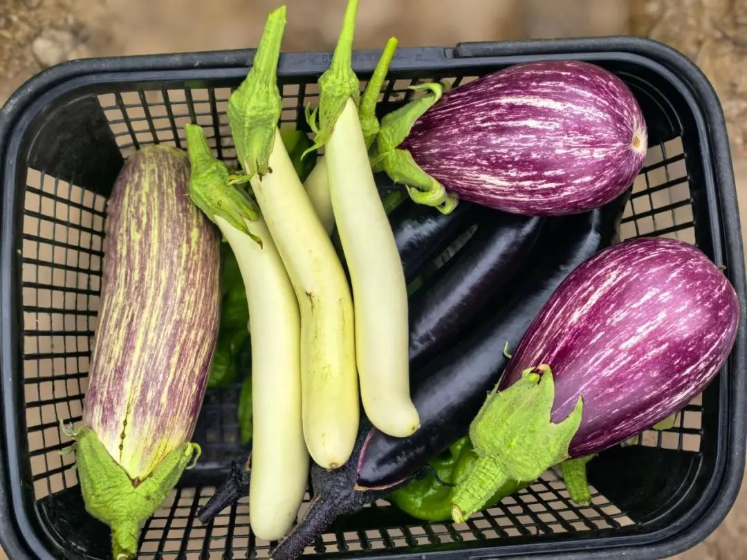 今年,新桥村选种了各种各样的茄子,花茄、白长茄、紫长茄、紫线茄,各类茄子营养丰富、做法多样,给予大家丰富的选择。