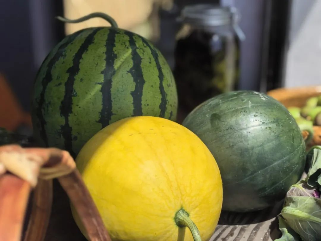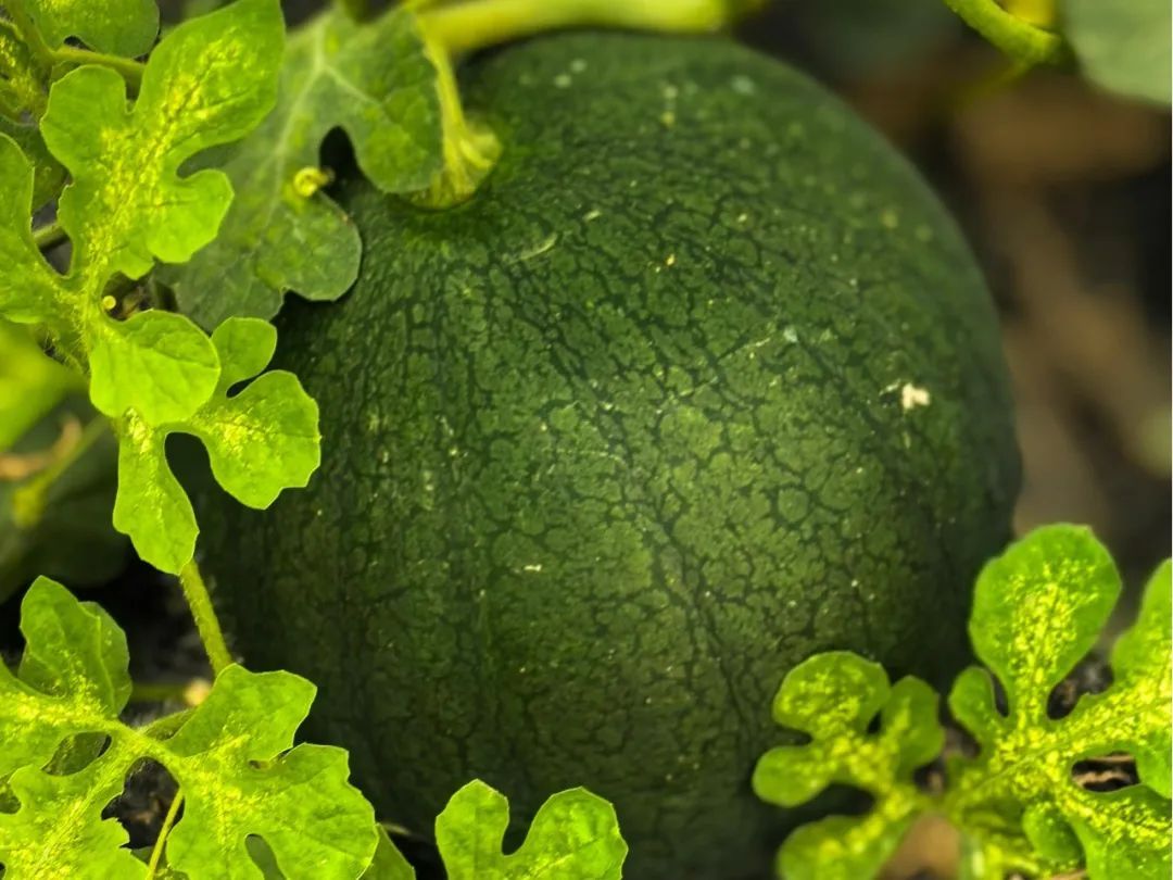 黑津西瓜果实呈球形,单瓜3~4斤,表皮墨绿发黑,覆盖着隐花条纹,果型小巧玲珑,适合家庭一次享用,皮薄如纸、汁水丰富,被称为“瓜中贵族”。