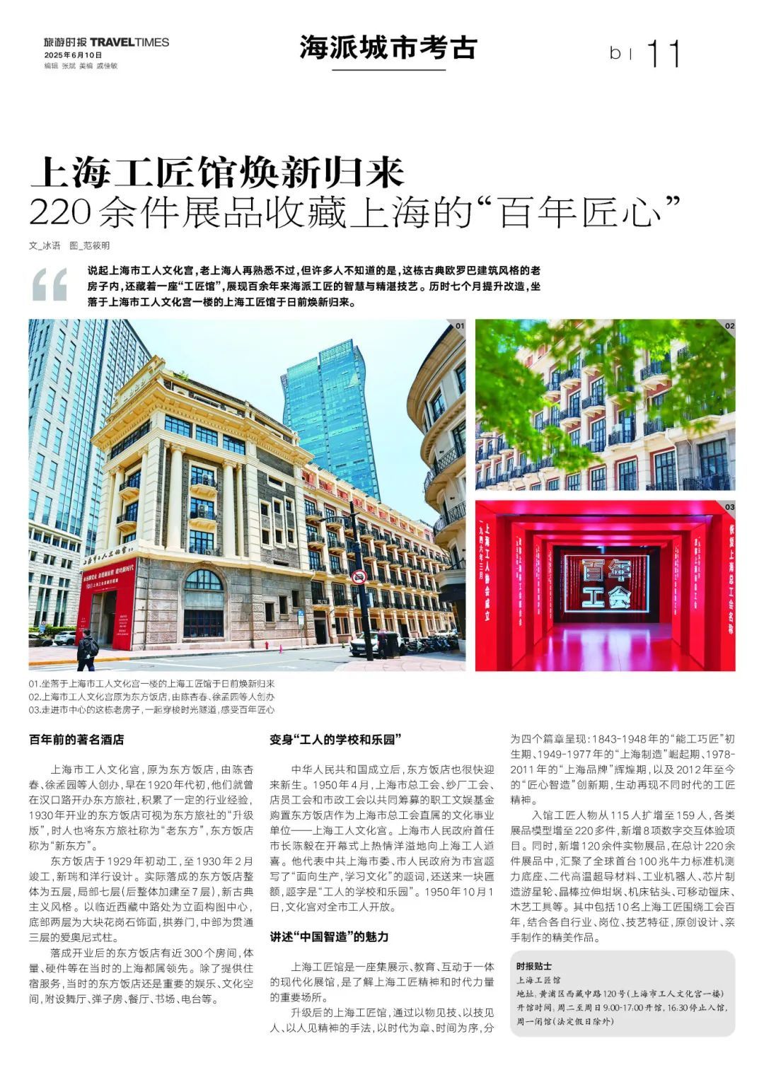 说起上海市工人文化宫,老上海人再熟悉不过,但许多人不知道的是,这栋古典欧罗巴建筑风格的老房子内,还藏着一座“工匠馆”,展现百余年来海派工匠的智慧与精湛技艺。历时7个月提升改造,坐落于上海市工人文化宫一楼的上海工匠馆于日前焕新归来。