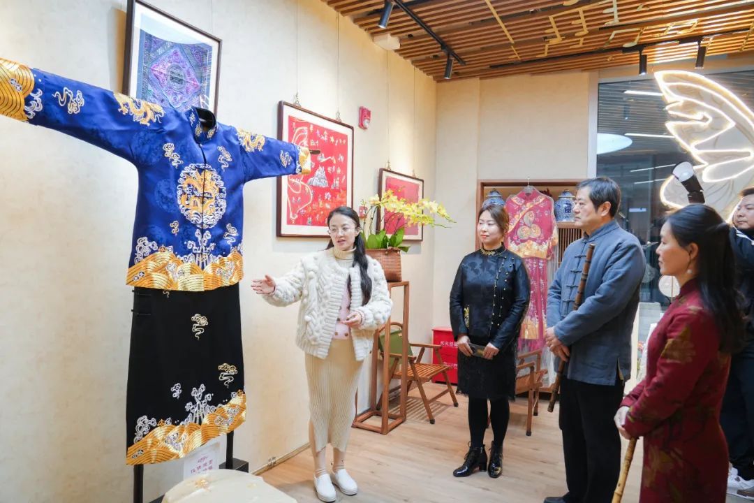 冯婧的目光更投向国际舞台。其创立的华福汇文化馆已成功入驻上海国际传媒港,近期作品参展上海城市规划展示馆“沪派江南”主题展。文化馆不仅展示独幅旗袍等非遗精品与工艺美术杰作,更通过举办文化沙龙、手工艺培训、高端企业交流活动,为非遗代表性传承人、工艺美术大师搭建国际化的展示、交流与合作平台,助力传统文化“走出去”,实现文化价值与经济效益的双赢。同时,华福汇以“非遗五进”(进社区、校区、街区、商区、产业园区),让非遗之美走出展馆,零距离融入百姓日常生活。