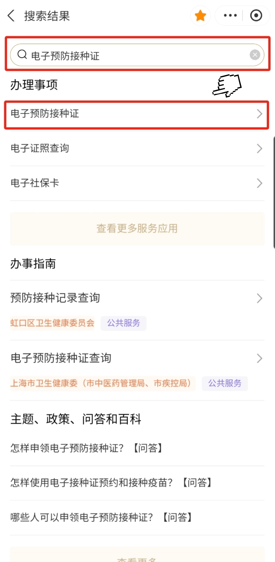 1、家长打开“随申办市民云”(APP/微信小程序/支付宝小程序),首页搜索“电子预防接种证”,点击进入对应服务。