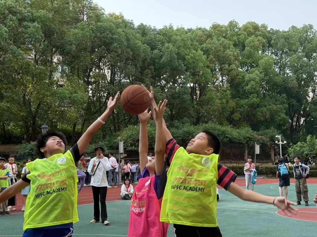 上外—黄浦外国语小学3V3篮球班班赛在操场如火如荼地进行。沈华晓 摄