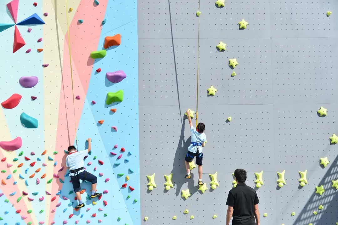 上海市普陀区洵阳路小学的学生正在进行“难度攀岩”项目训练。夏豪栋 摄