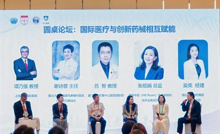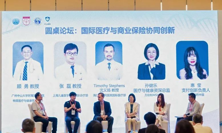 在国际医疗与商业保险协同策略、国际医疗与创新药械相互赋能议题环节。南方医院惠侨医疗中心吴京主任以“粤港澳大湾区药械通赋能国际医疗服务发展”详细阐述了该政策在促进新药新器械快速进入临床使用、提高国际患者治疗效果方面的积极作用,并分享了南方医院惠侨医疗中心在此政策下的实践经验与成果。复旦大学中山医院以“公立医院商业保险建设与管理”为题,分享了中山医院国际部与商保协同发展的实践思考。