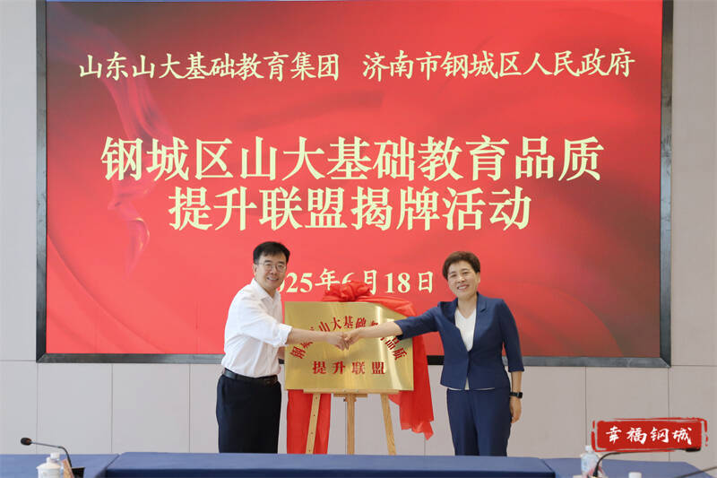 会上,易凡、郅颂共同为“钢城区山大基础教育品质提升联盟”揭牌,双方代表共同签署《济南市钢城区人民政府与山东山大基础教育集团合作办学协议书》。