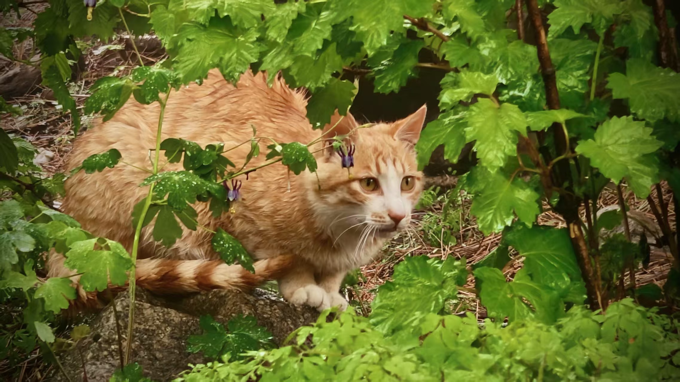 夏雨倾洒泰山后石坞北的山林,新绿在雨帘中肆意舒展,叶片缀满晶莹露珠,折射着夏日的灵动。野花草在湿润的风里轻轻摇晃,小蜗牛背着壳,慢悠悠地攀爬过沾满水珠的青荇。橘猫躲在枝叶繁茂处,琥珀色的眼睛映着雨幕,整个山林氤氲着潮湿的生机,满是夏日独有的鲜活与热烈。