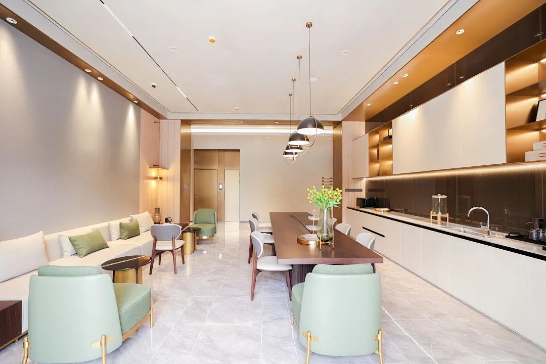 17层的创寓228,包含450套公租房和近1万平方的社区文化商业。保障性长租公寓出租率达90%,30岁以下的青年租客占比超八成,形成了“下楼即办公、出门即生活”的创新生态圈。公寓内配套共享厨房、健身中心,公区设有“读书角”,特色女性楼层以艺术摆件营造浪漫氛围,宠物楼层配备智能寄养舱和专属娱乐设施。创新推出“掌上公寓”App集成智能门锁、服务预约等功能,提供全屋保洁、垃圾代收等增值服务。24小时安保系统和机器人配送保障居住安全,近300个地下车位化解停车难题。社区食堂、精酿酒吧、便利店等配套串联起便捷生活链,持续提高生活居住品质。