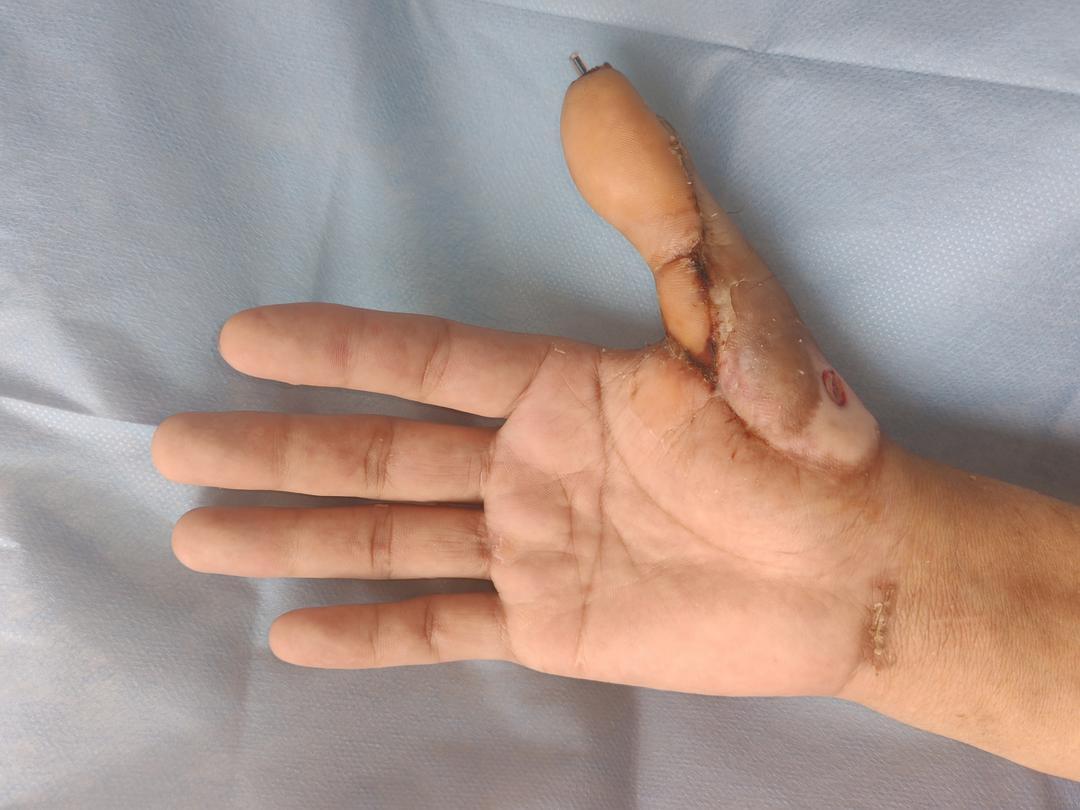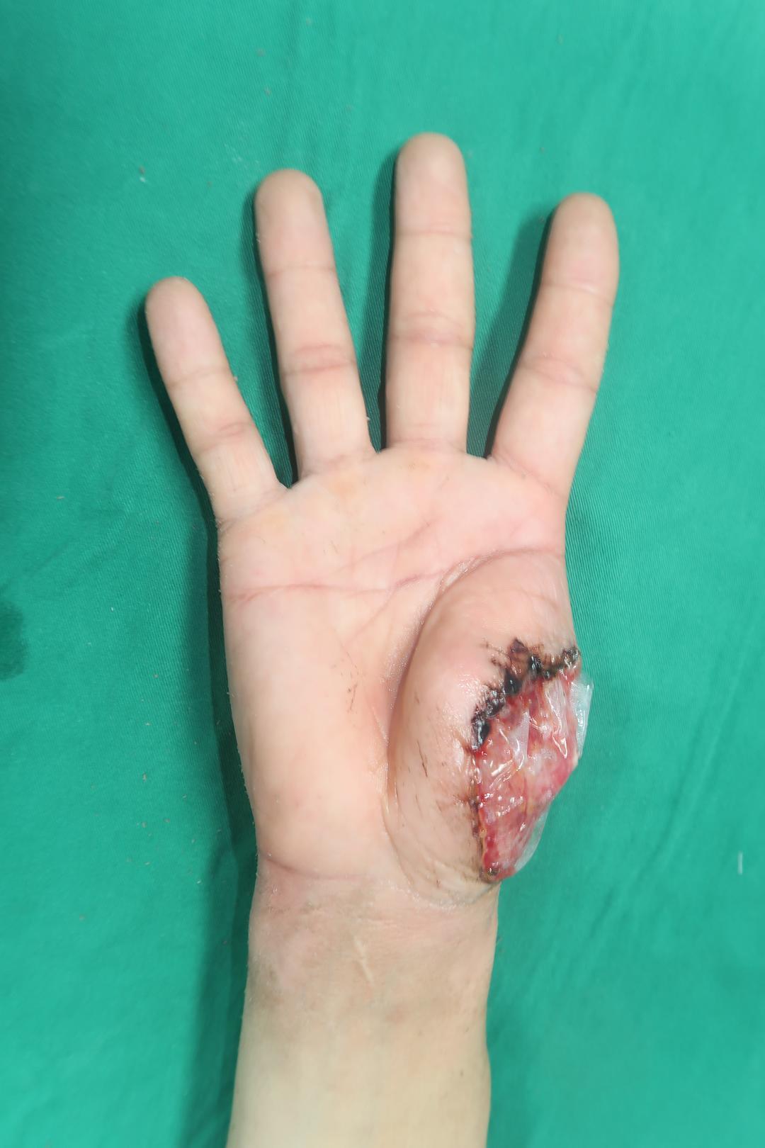 时间回溯到几个月前,李先生在工作时不幸被机器砸伤右手,伤势严重导致右手大拇指完全缺失,被紧急送往当地医院救治,医院为李先生进行了伤口缝合处理,但右手拇指的缺失,让李先生的基本生活能力丧失,连简单的抓握动作都难以完成,给他的日常生活带来了极大不便。幸而,之前他在网上看到过青岛西海岸第二医院手指再造的新闻报道,他便慕名前来治疗。