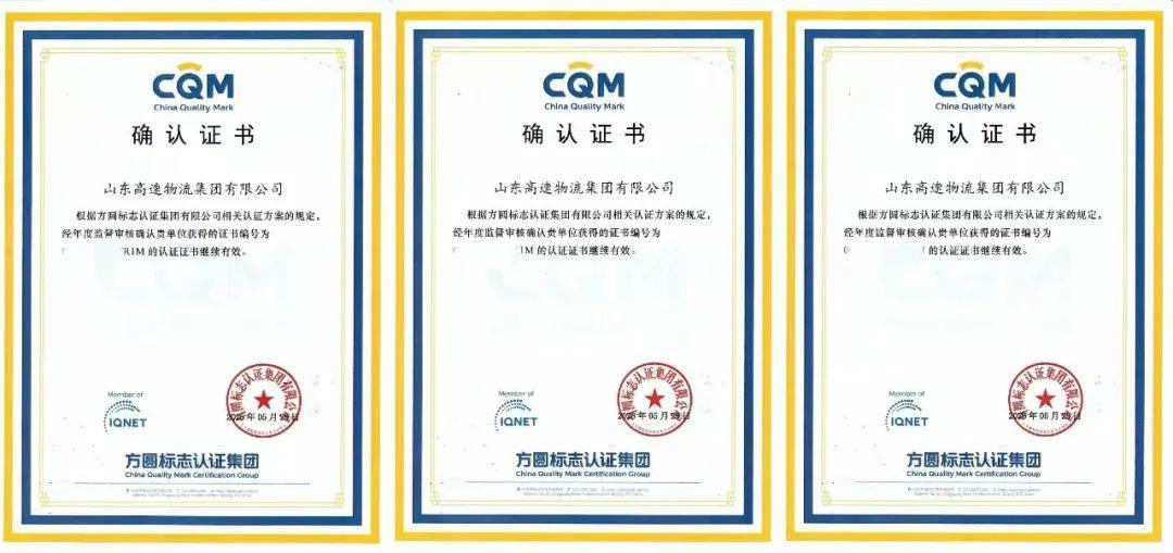 近日,山东高速物流集团顺利通过ISO9001质量管理体系、ISO14001环境管理体系、ISO45001职业健康安全管理体系的年度监督审核,标志着公司在质量管控、绿色物流和安全生产等领域的管理水平持续符合国际标准。