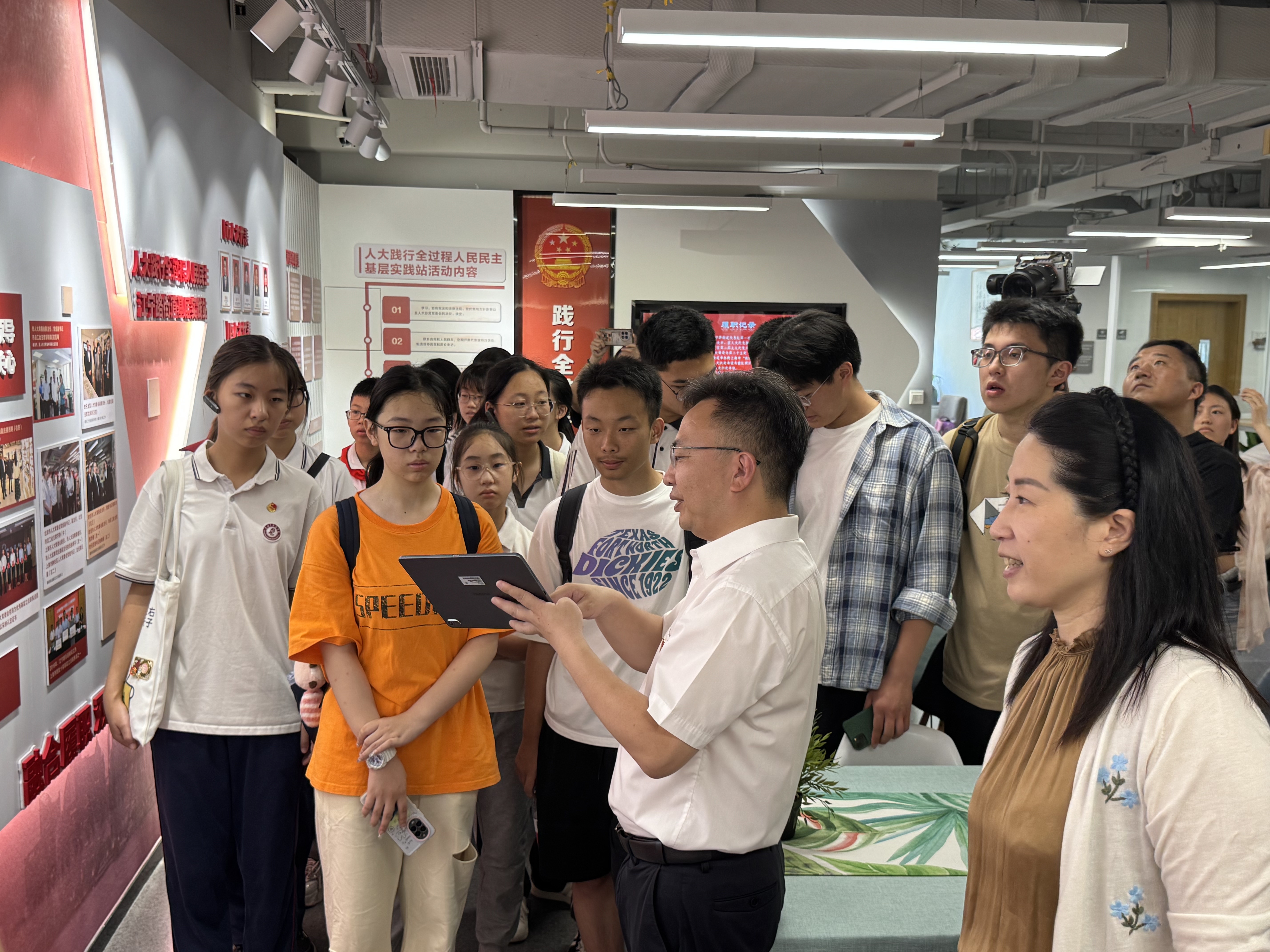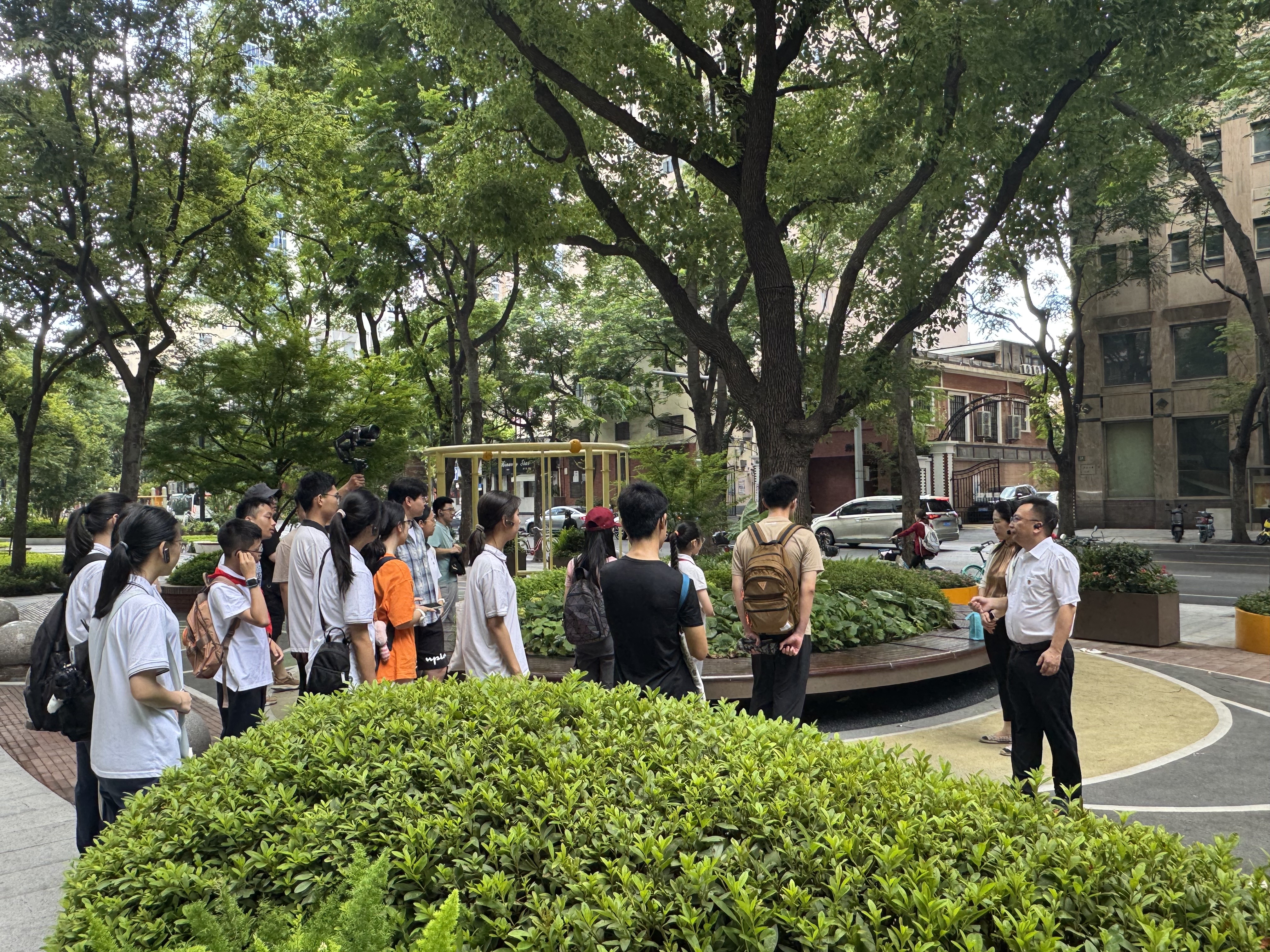 静安区人大代表王永文带着少年们漫步昌平路口袋公园,边走边讲解老路新生的设计细节。随后的座谈会上,建设者们分享了口袋公园从构想变为现实的全过程,让少年们直观感受 “全过程人民民主”在社区治理中的生动实践。