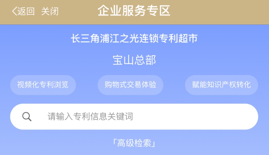 近日,宝山区市场监管局(知识产权局)会同区政务服务中心在“随申办”市民云宝山旗舰店推出“专利超市”应用模块,实现企业专利技术的“视频浏览、精准检索、一键对接”,切实提升专利服务便捷性、增强企业获得感,推动专利创新成果更多、更快、更好转化。