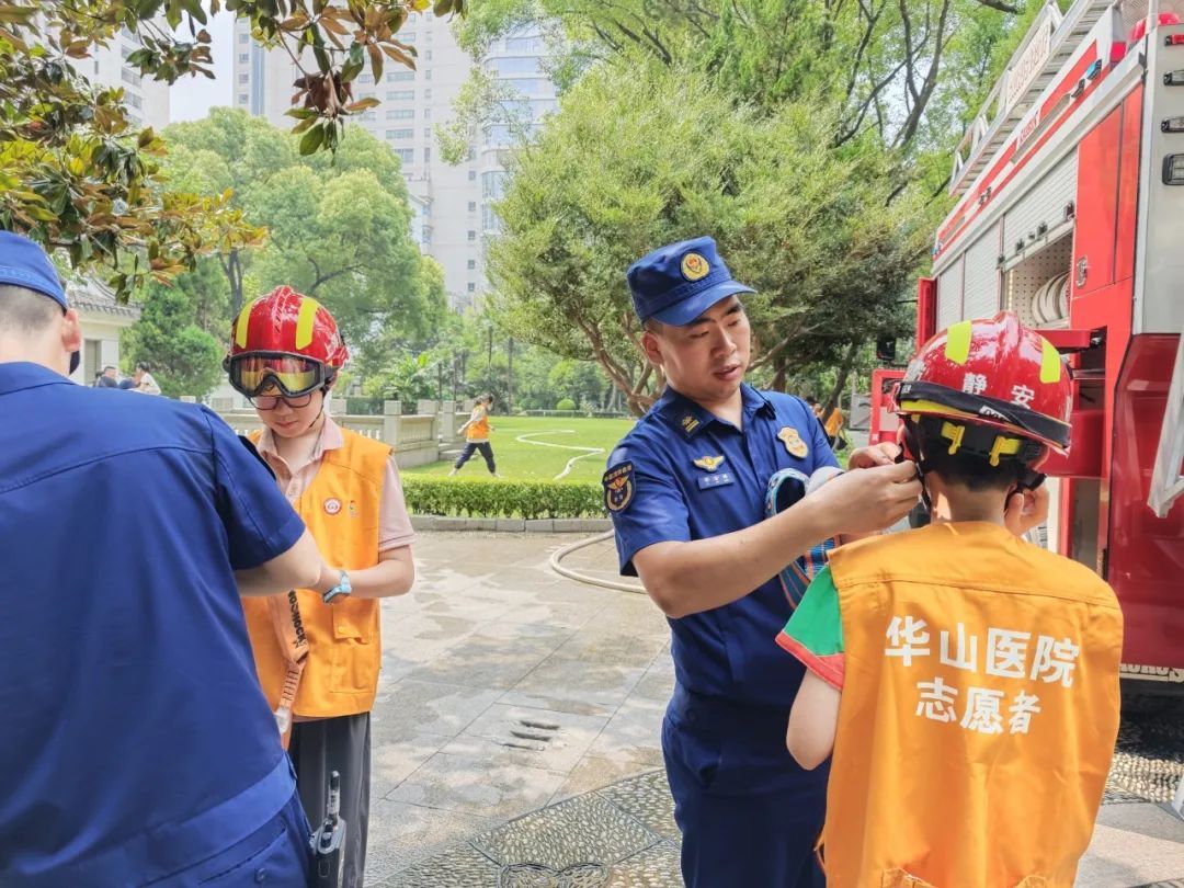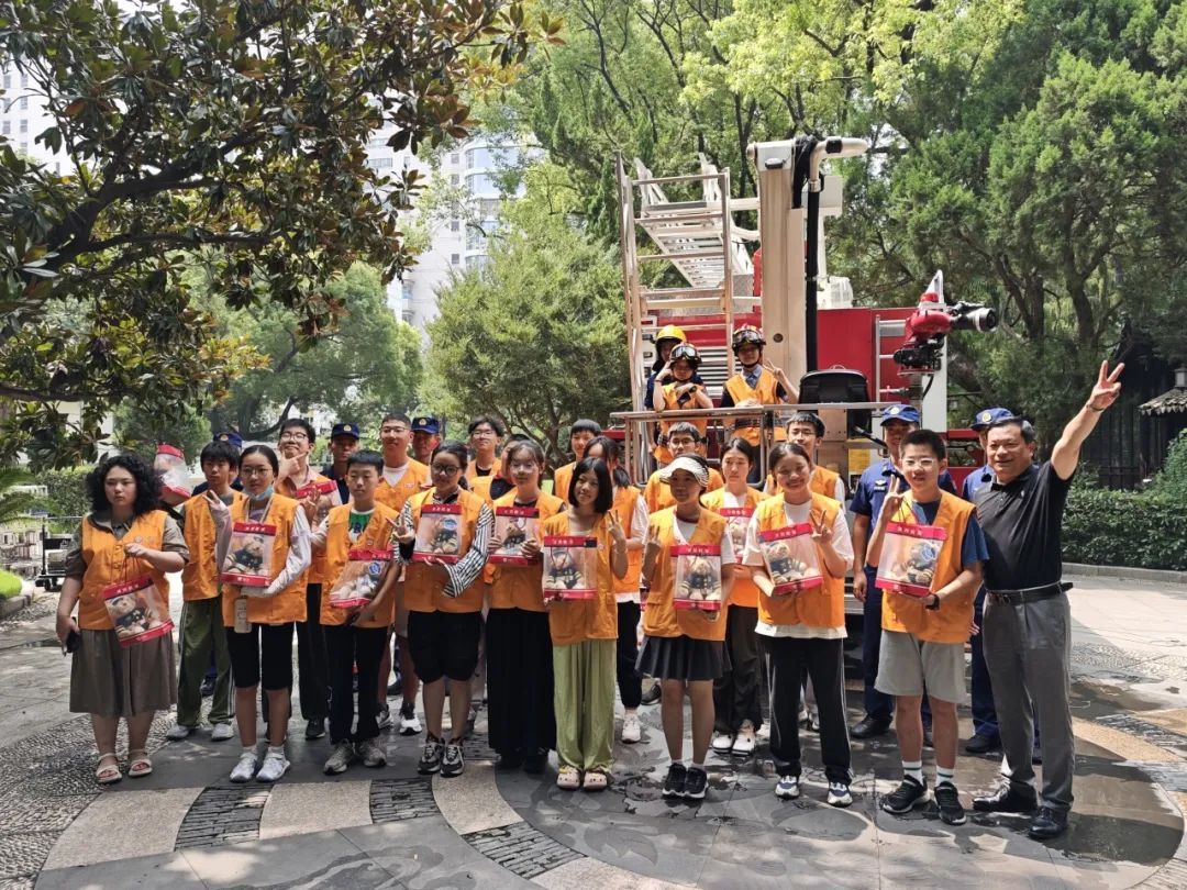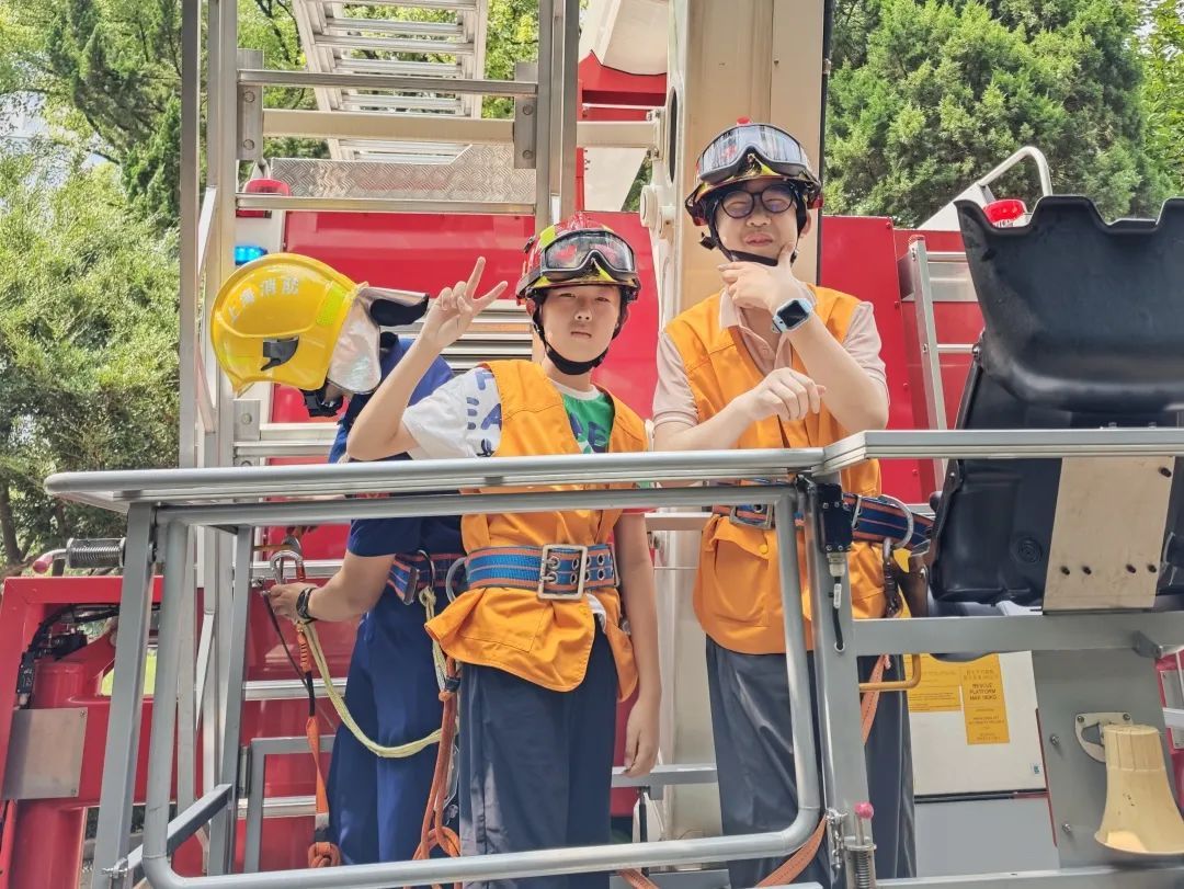 当天上午,保卫处消防科科长富学斌邀请静安消防救援支队的队员们,带领“华二代”坐上消防车云梯、感受灭火水炮的威力,上了一节有趣生动的消防课。