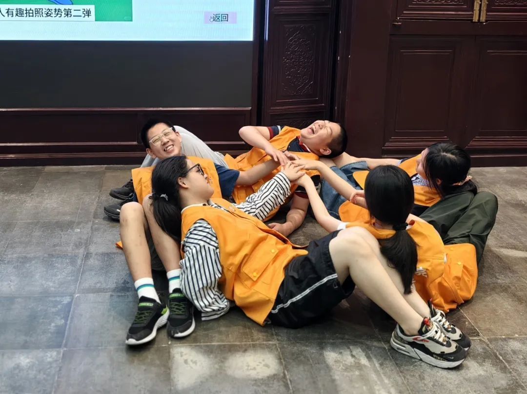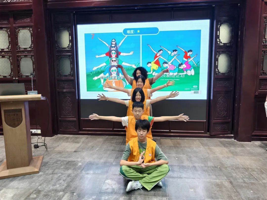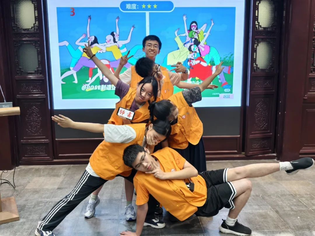 7月14日清晨,花园大厅已是热闹非凡,孩子们正在进行有趣的破冰游戏:“肢体计算器”游戏中,“12个手臂”的指令让孩子们笑着拉手组队。在“POSE大作战”的协作挑战里,孩子们陌生感悄然消散。四支队伍分别以“你说的都队”、“4578队”、“华山第一拆迁大队”、“善行者联盟”命名正式开启征程。