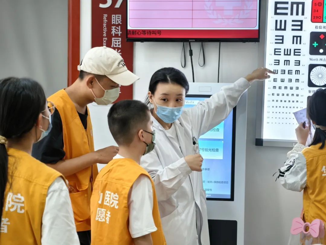 眼科主治医师符书昊带领孩子们测眼压、眼轴,解读报告,孩子们还亲自上阵,体验了一把眼科小医生的感觉,过足了“医生瘾”。